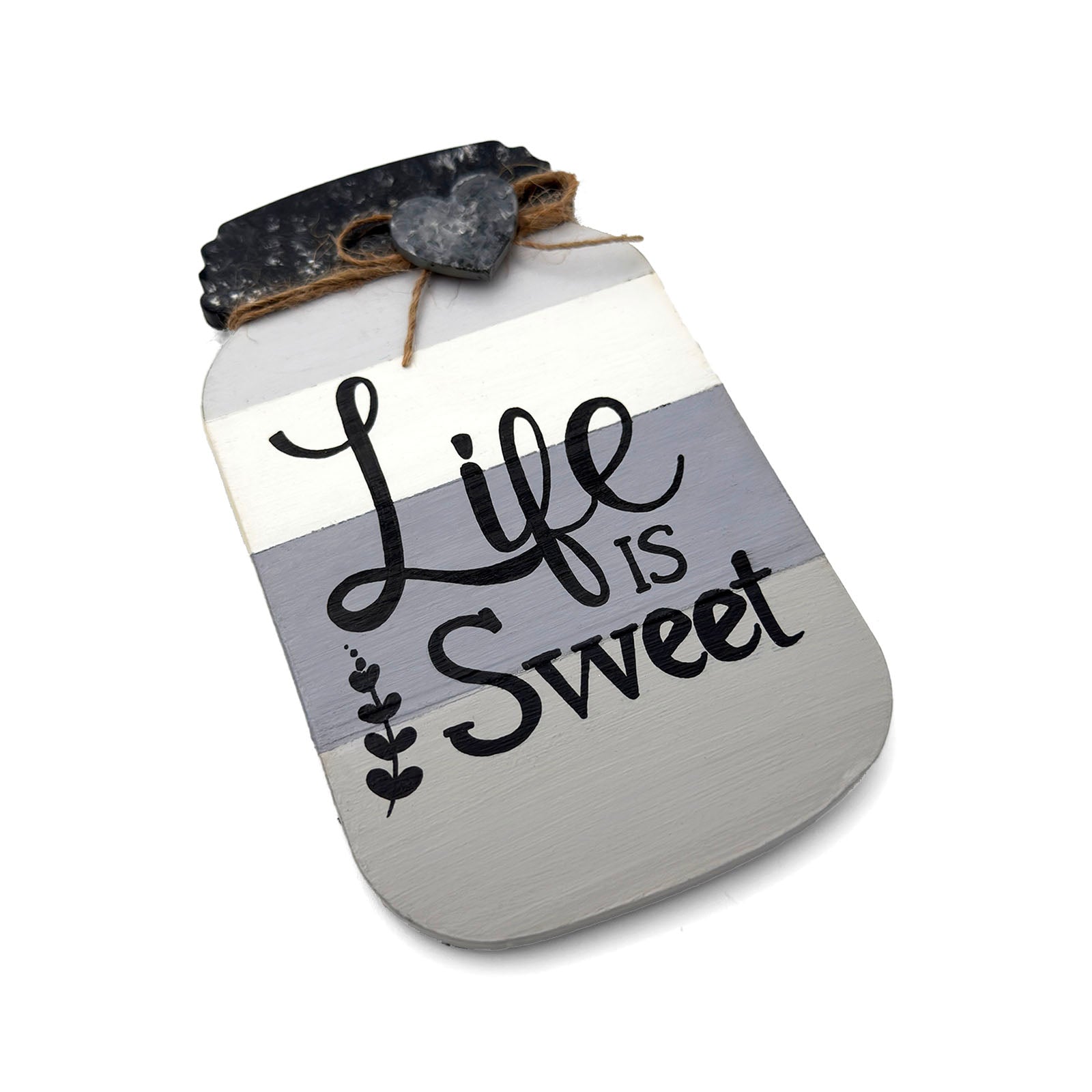 Life Is Sweet Hand-Painted Wooden Mason Jar Fridge Magnet - Grey