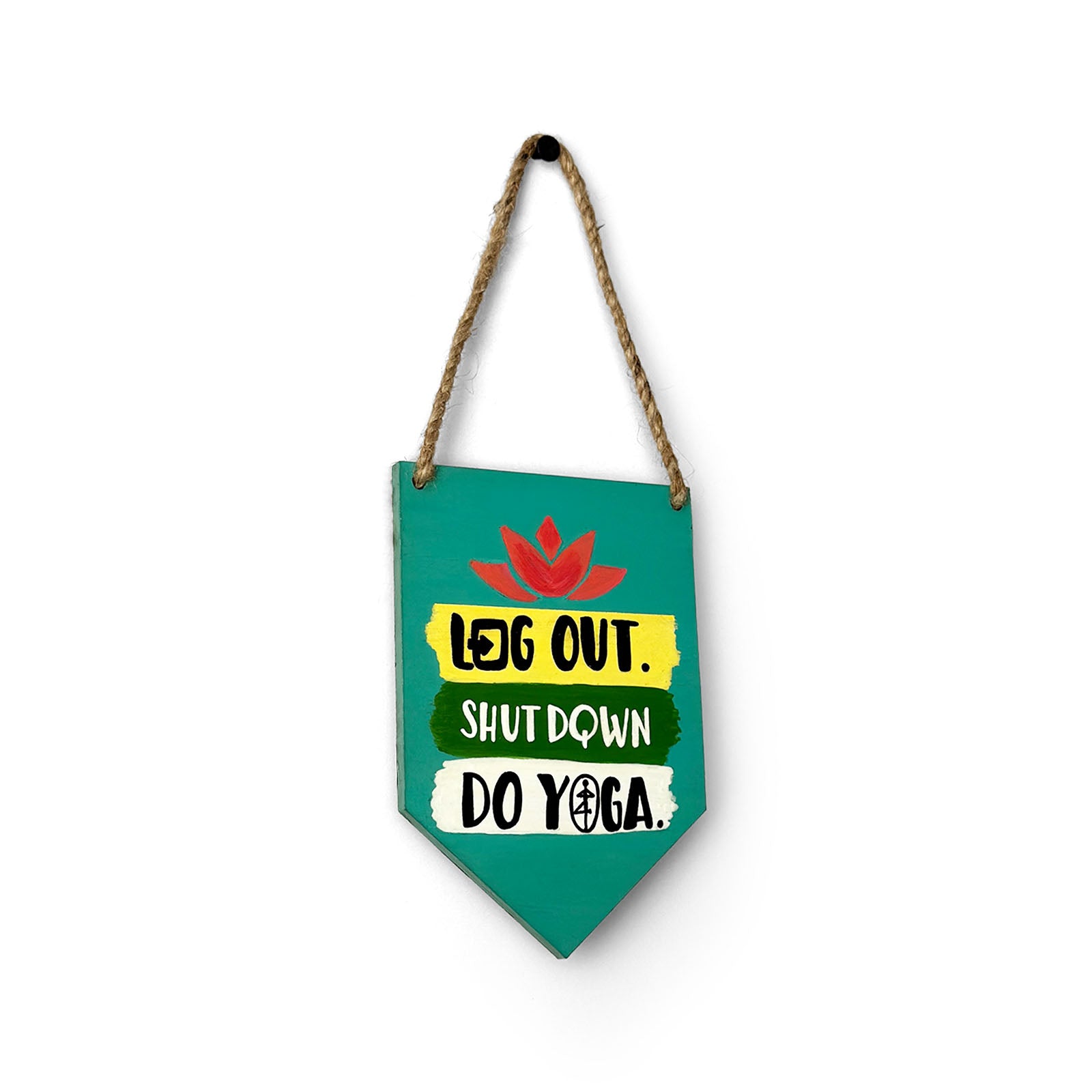 Log Out, Shut Down, Do Yoga Hand-Painted Wooden Banner Hanging