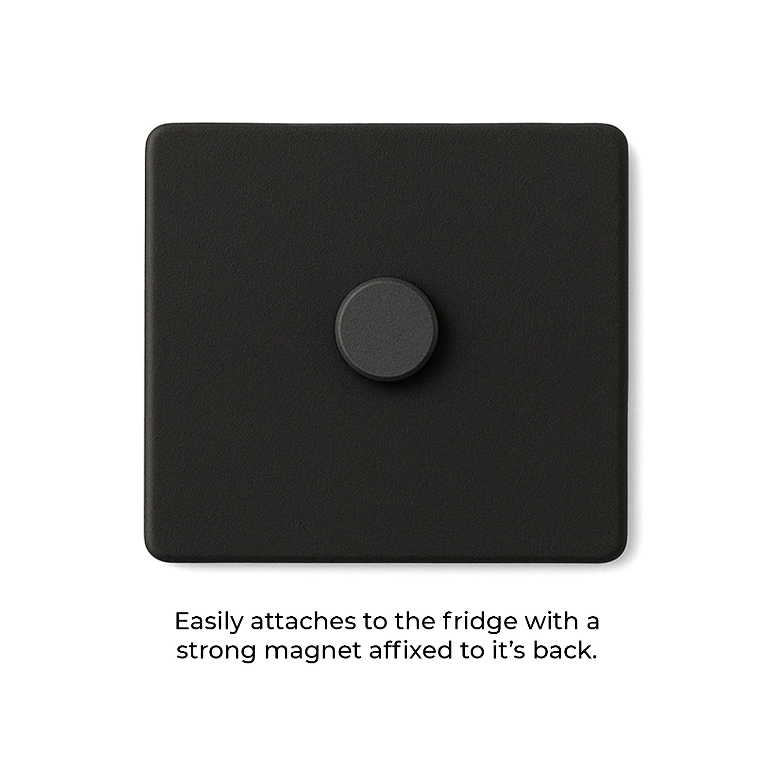 - It conveniently attaches to the fridge with a strong magnet affixed to the back.