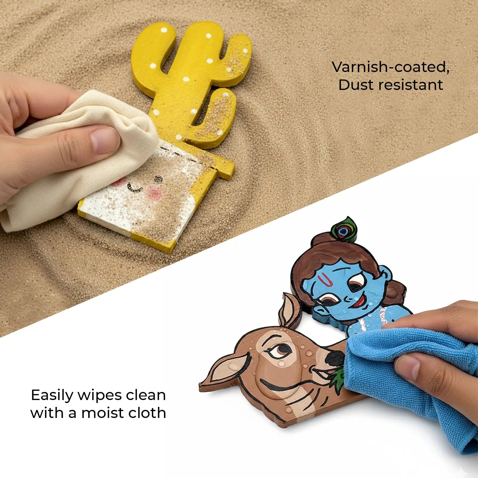 - Add a sacred touch to your kitchen with this intricately hand-painted Krishna Ji fridge magnet, bringing divine energy and artistic charm to any space.