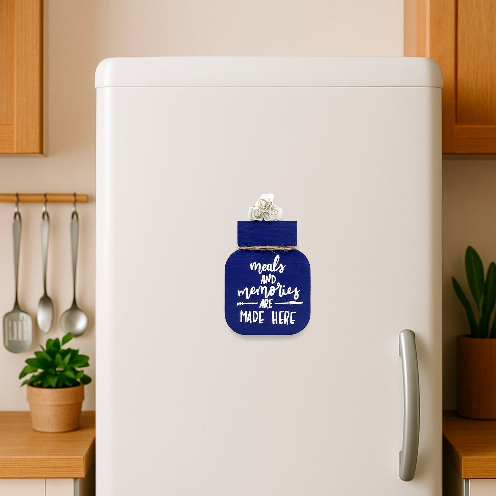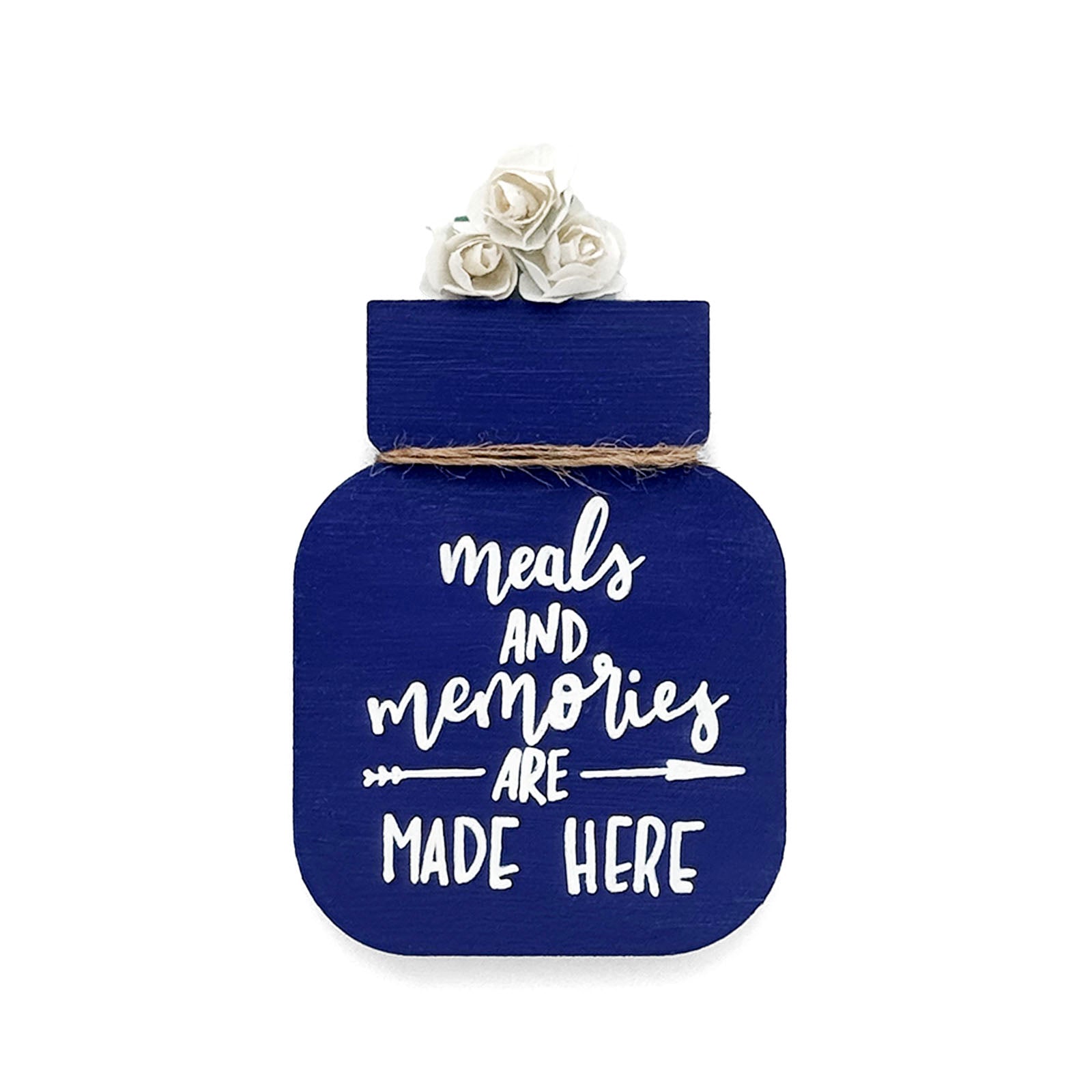 Meals And Memories Are Made Here Hand-Painted Wooden Mason Jar Fridge Magnet - Blue