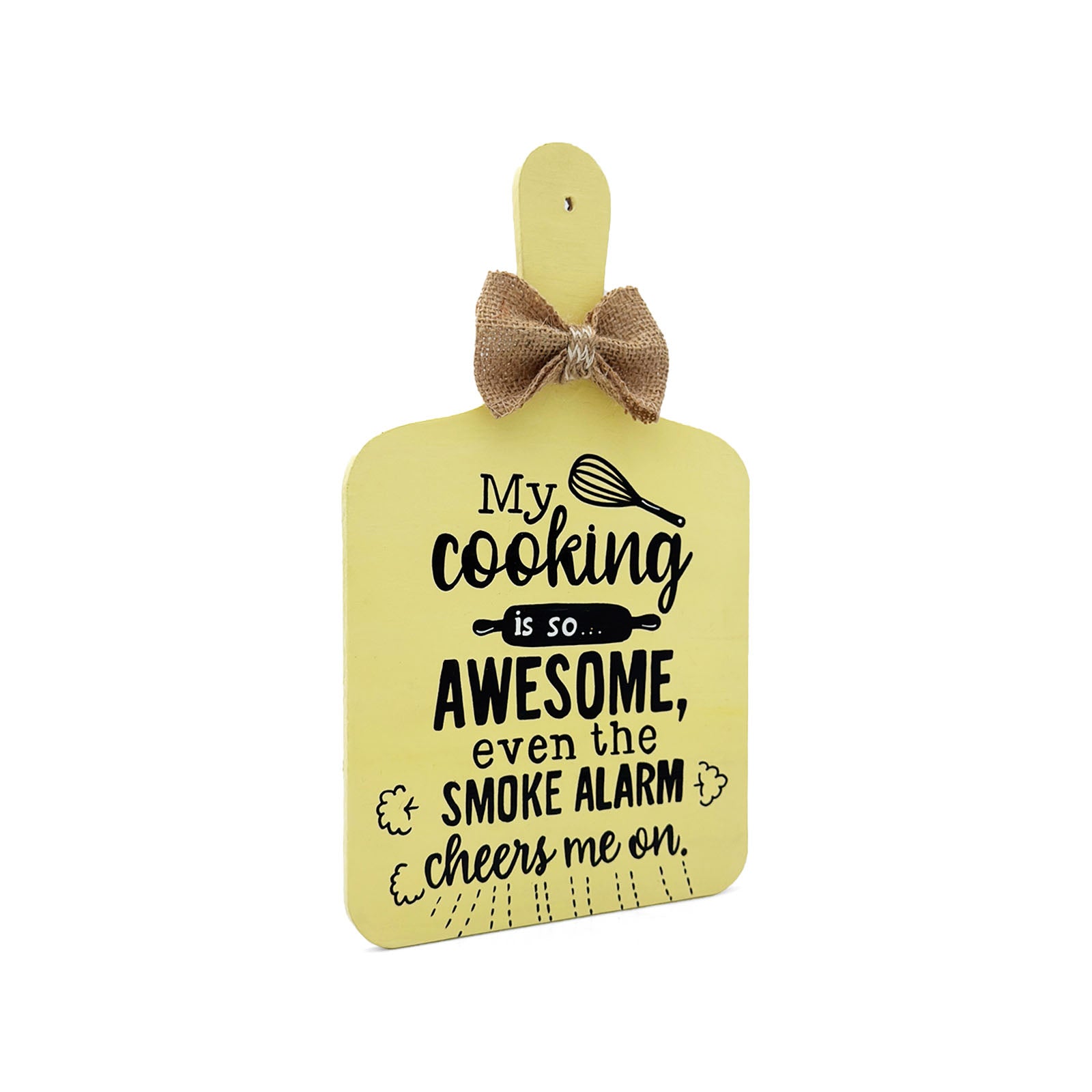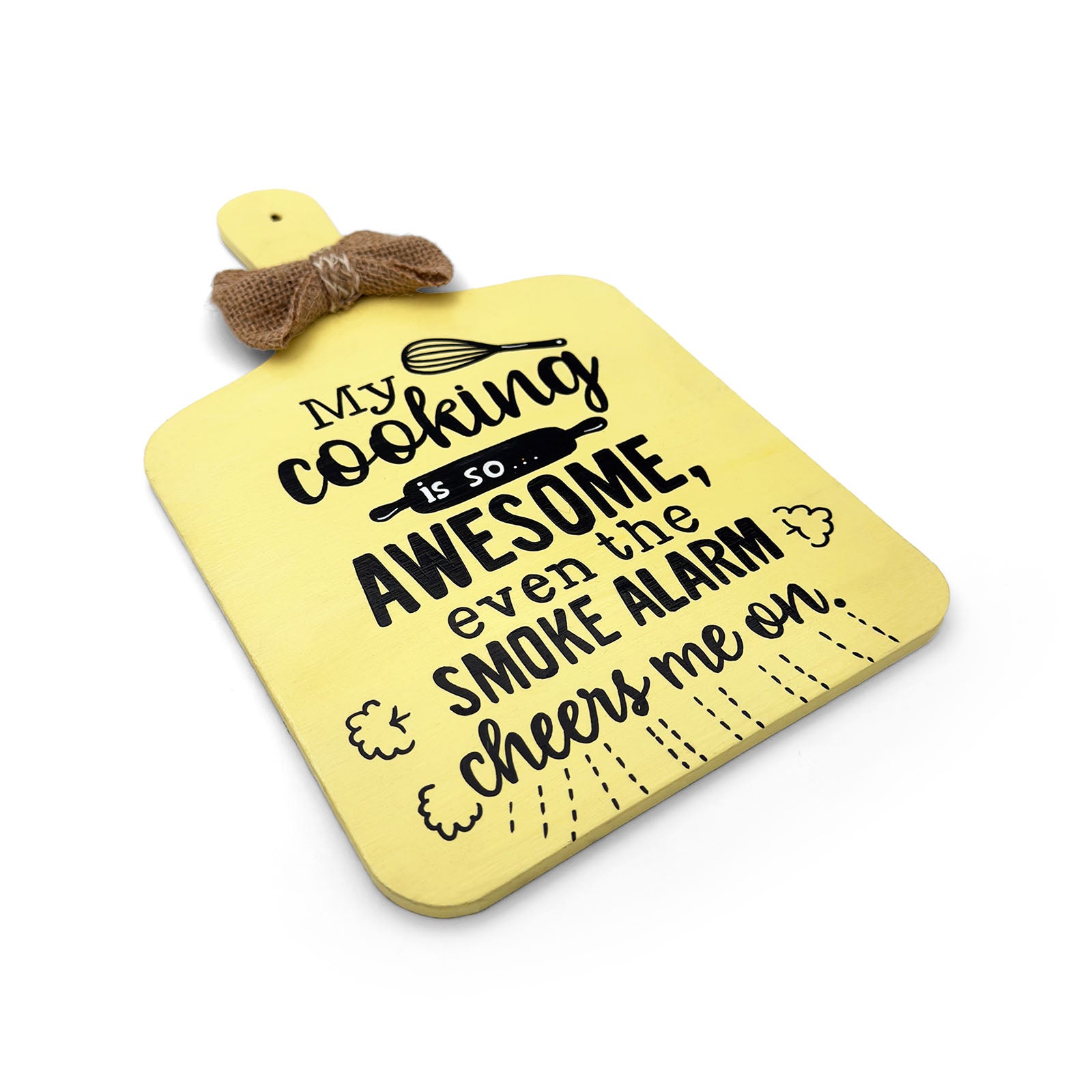 My Cooking Is So Awesome, Even The Smoke Alarm Cheers Me On Hand-Painted Wooden Chopping Board Kitchen Wall Hanging - Yellow