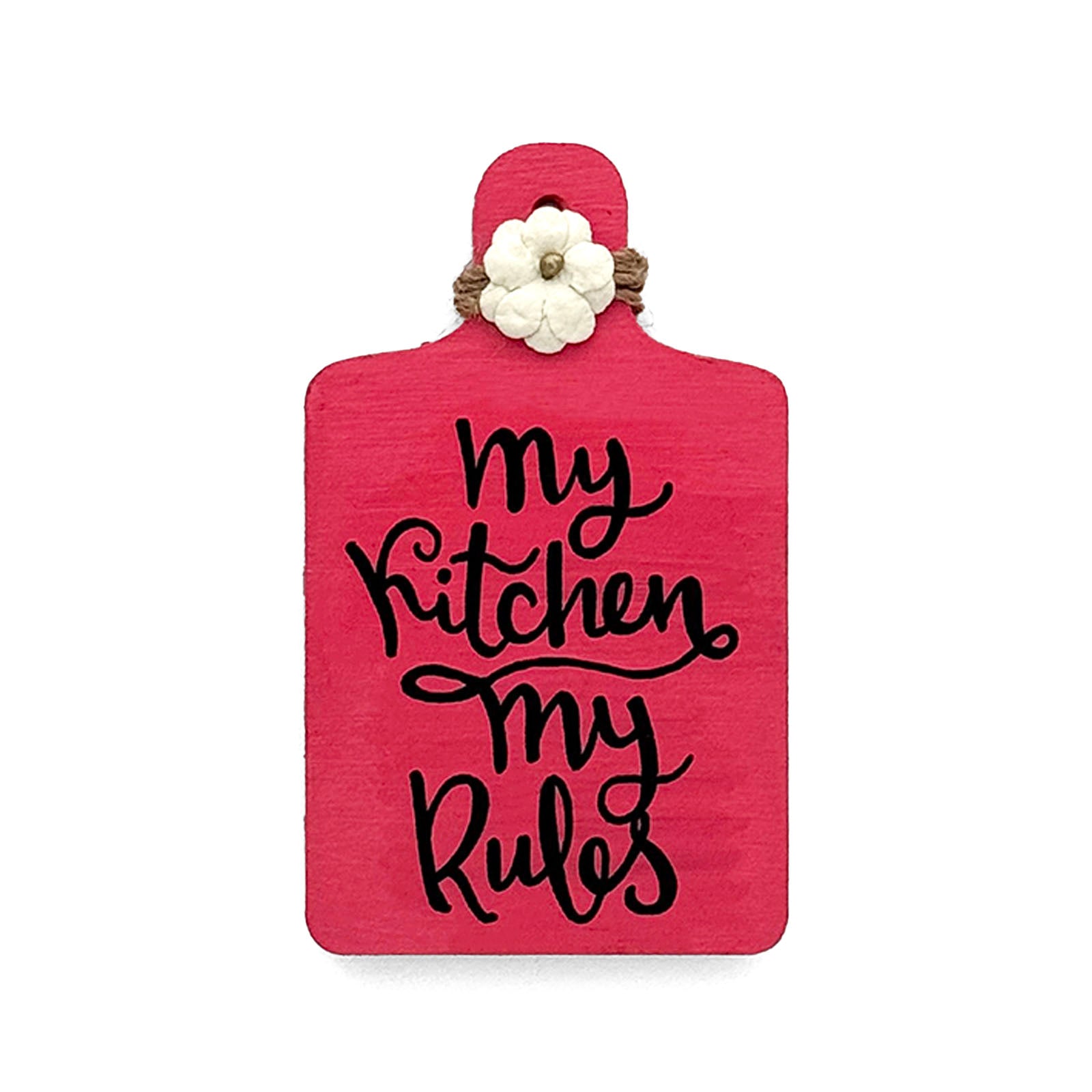 My Kitchen My Rules Hand-Painted Wooden Chopping Board Fridge Magnet - Pink