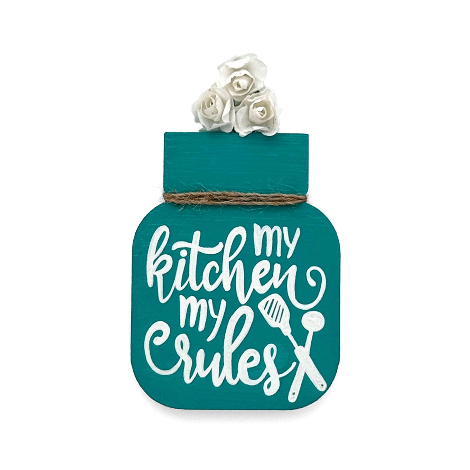My Kitchen My Rules Hand-Painted Wooden Mason Jar Fridge Magnet - Teal
