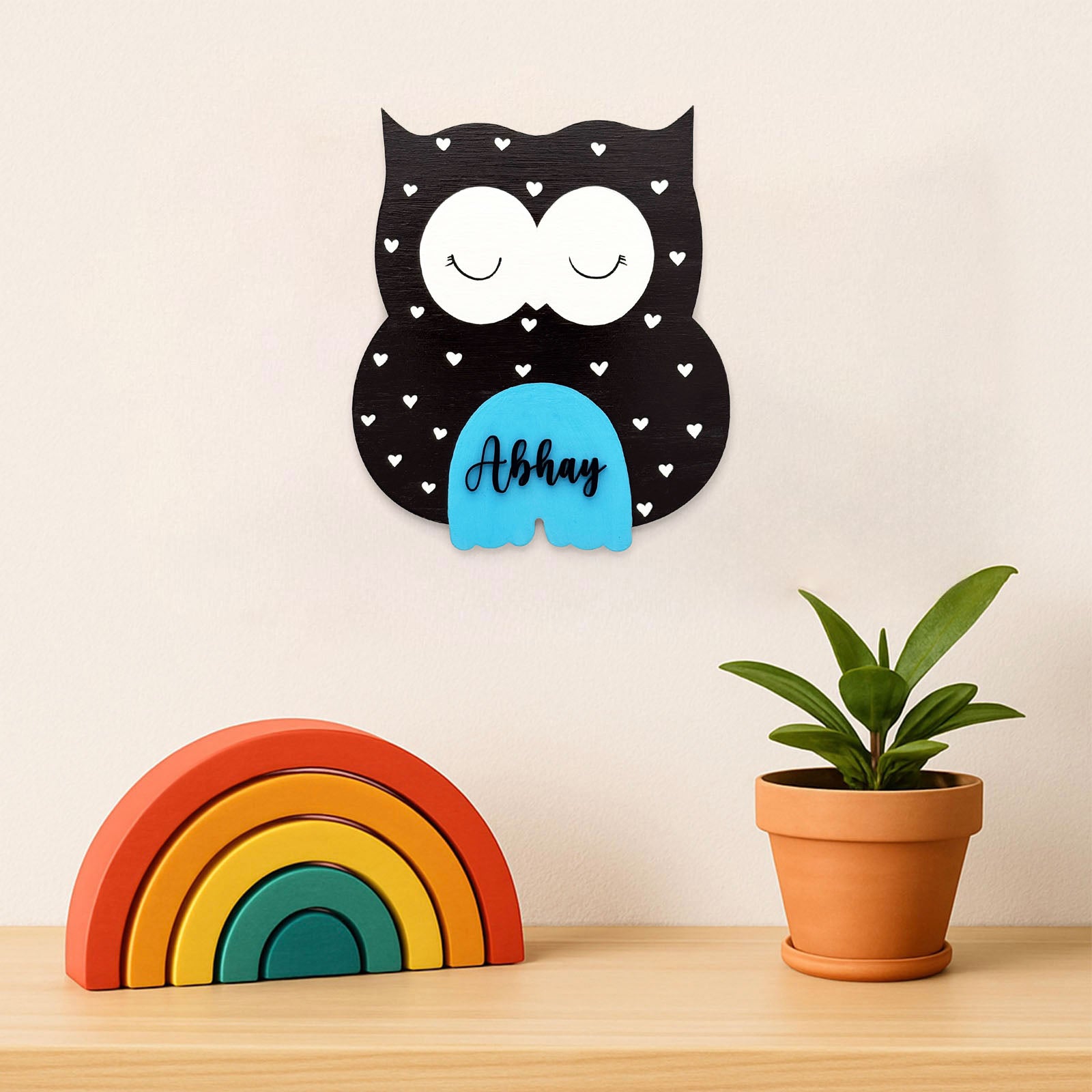 - Add a charming touch to your kid’s room with this adorable owl-themed nameplate.