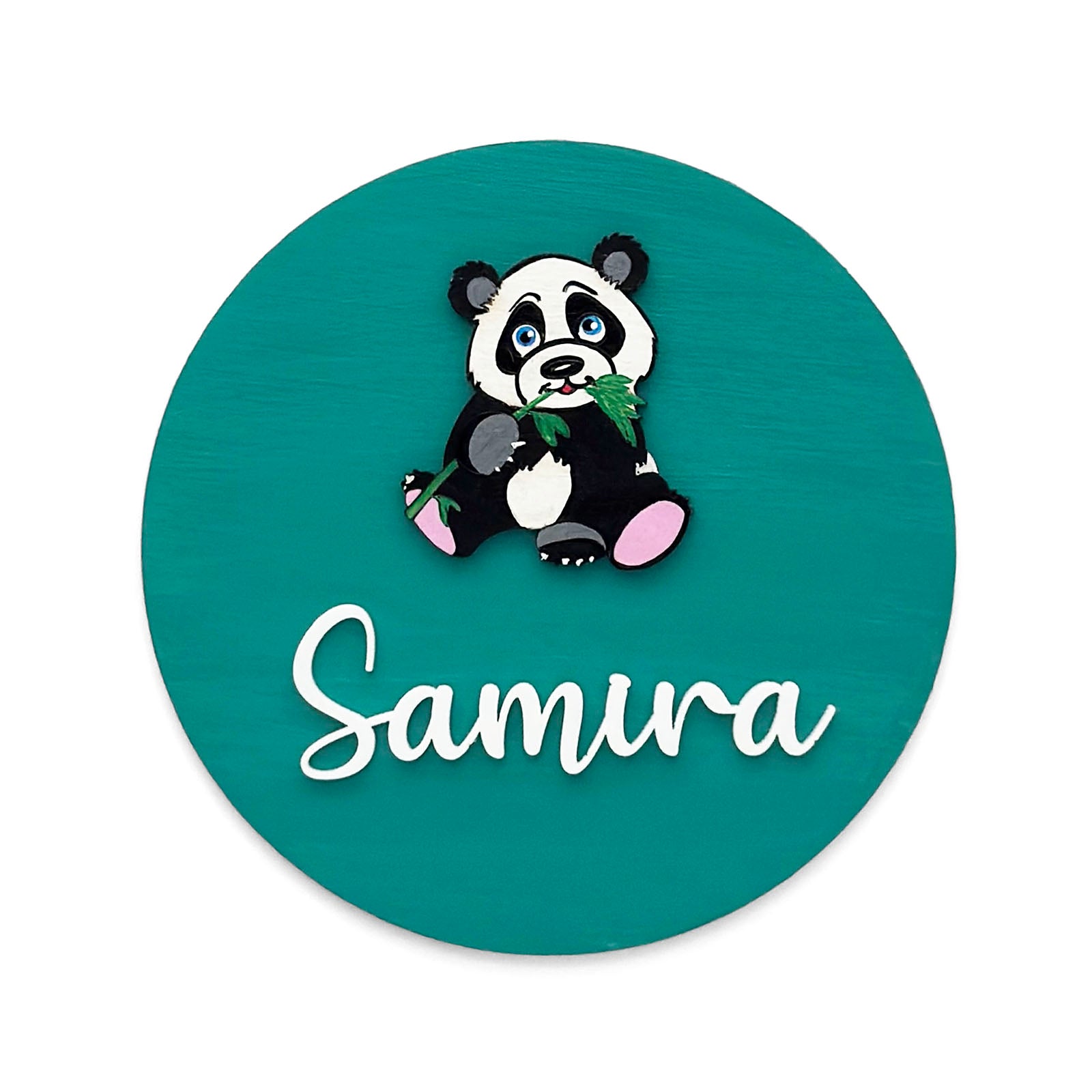 - Add a charming touch to your kid’s room with this adorable panda-themed nameplate.
