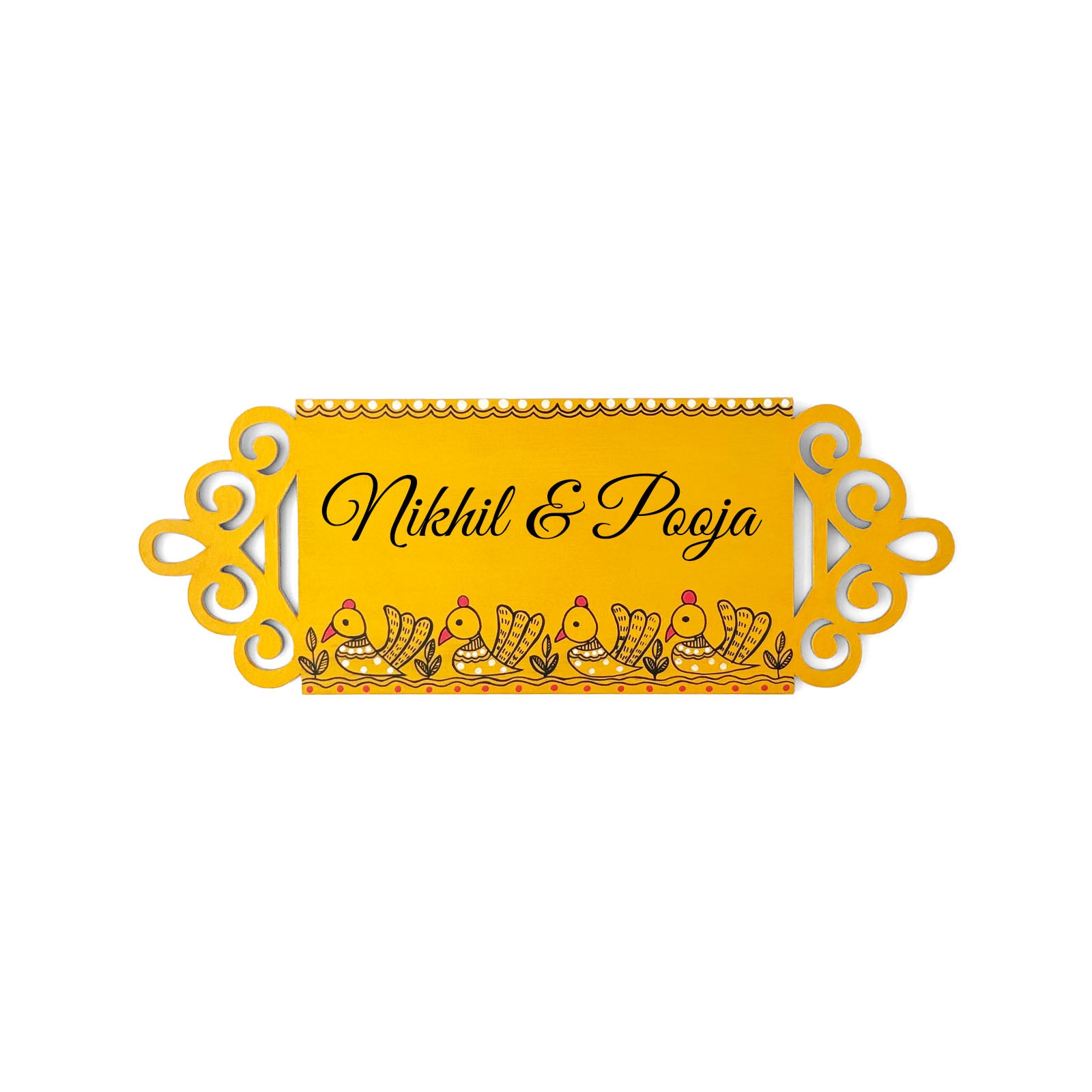 - This exquisite nameplate features intricate Madhubani art, a traditional Indian folk painting known for its rich colors and detailed patterns.