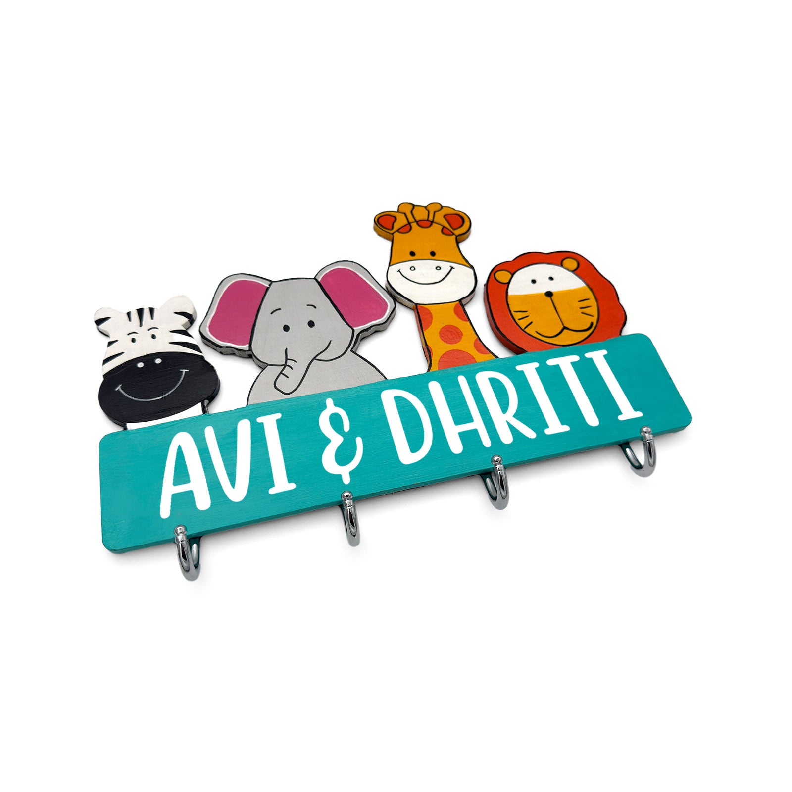 Personalised Animal Themed Hand-Painted Wooden Kids Wall Hanger