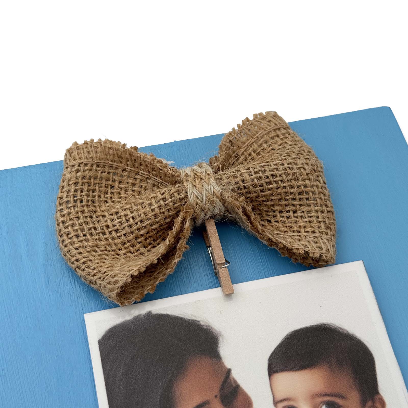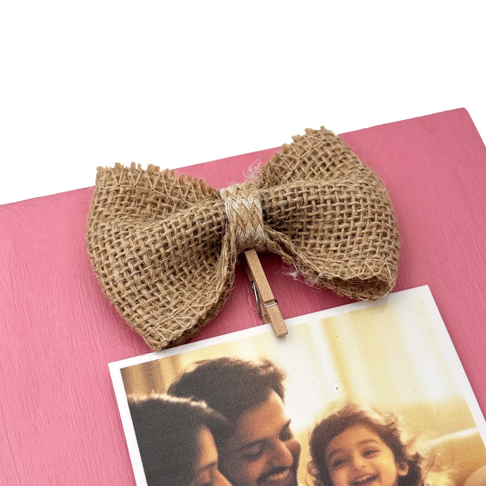 - This photo holder comes with an attached wooden clip to hang photograph.