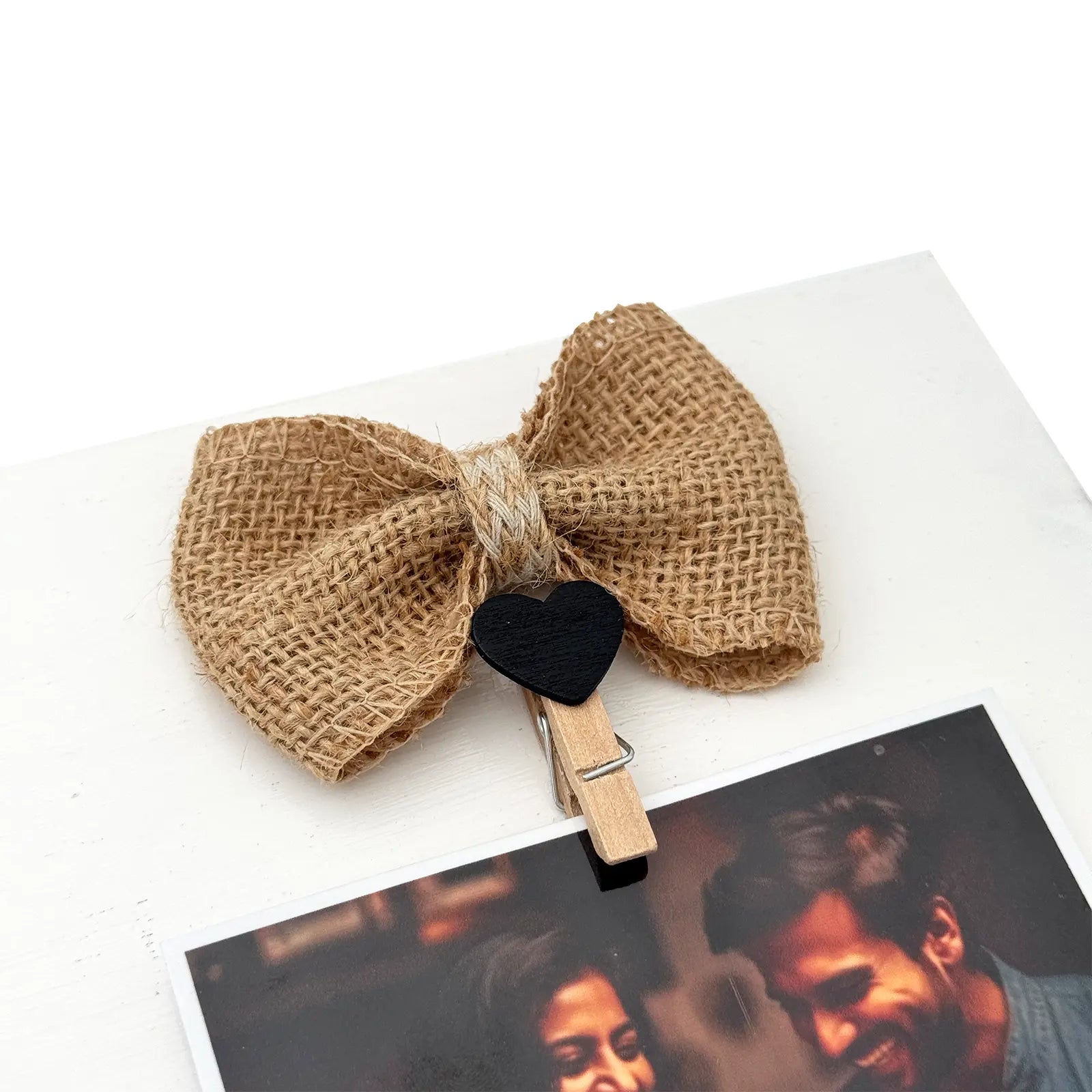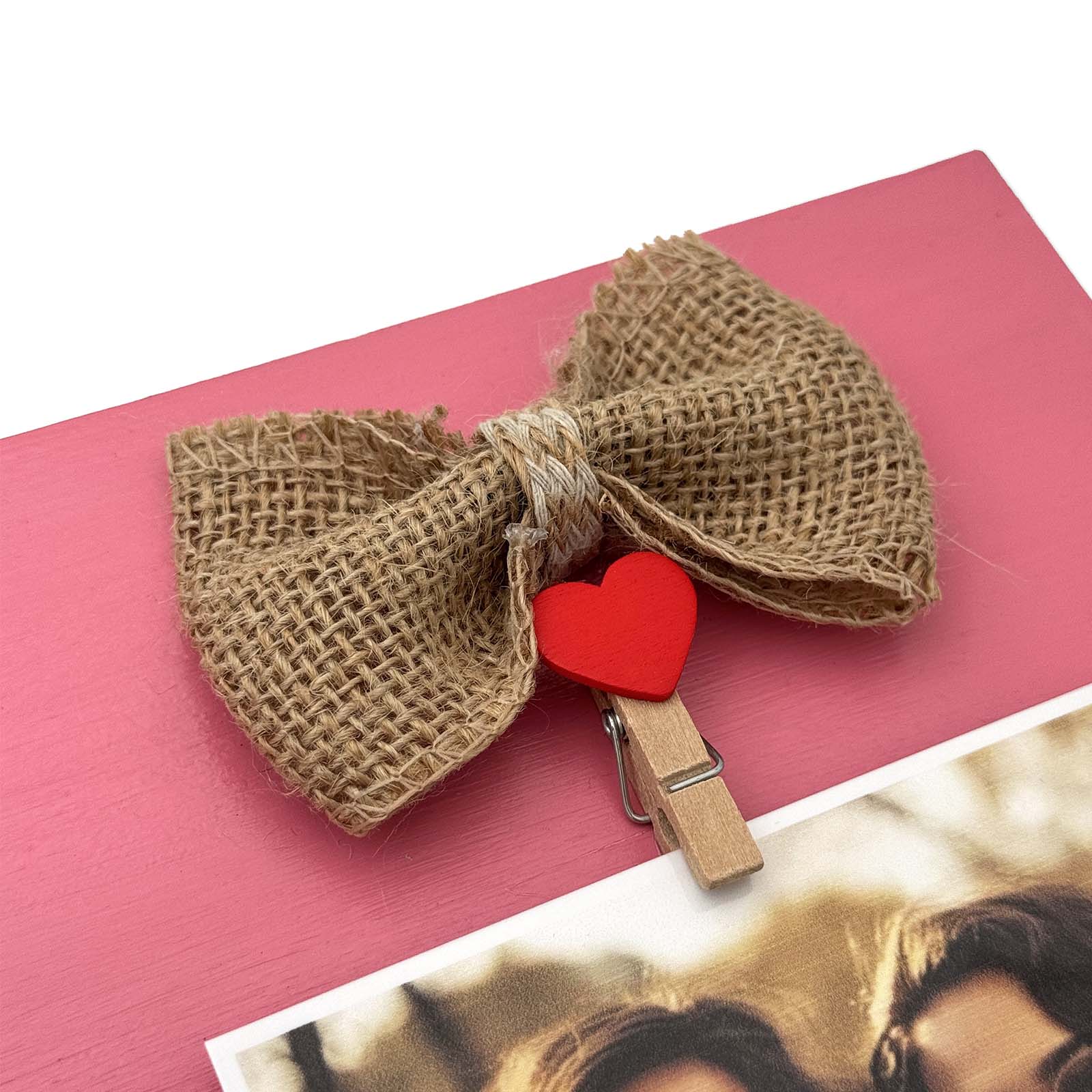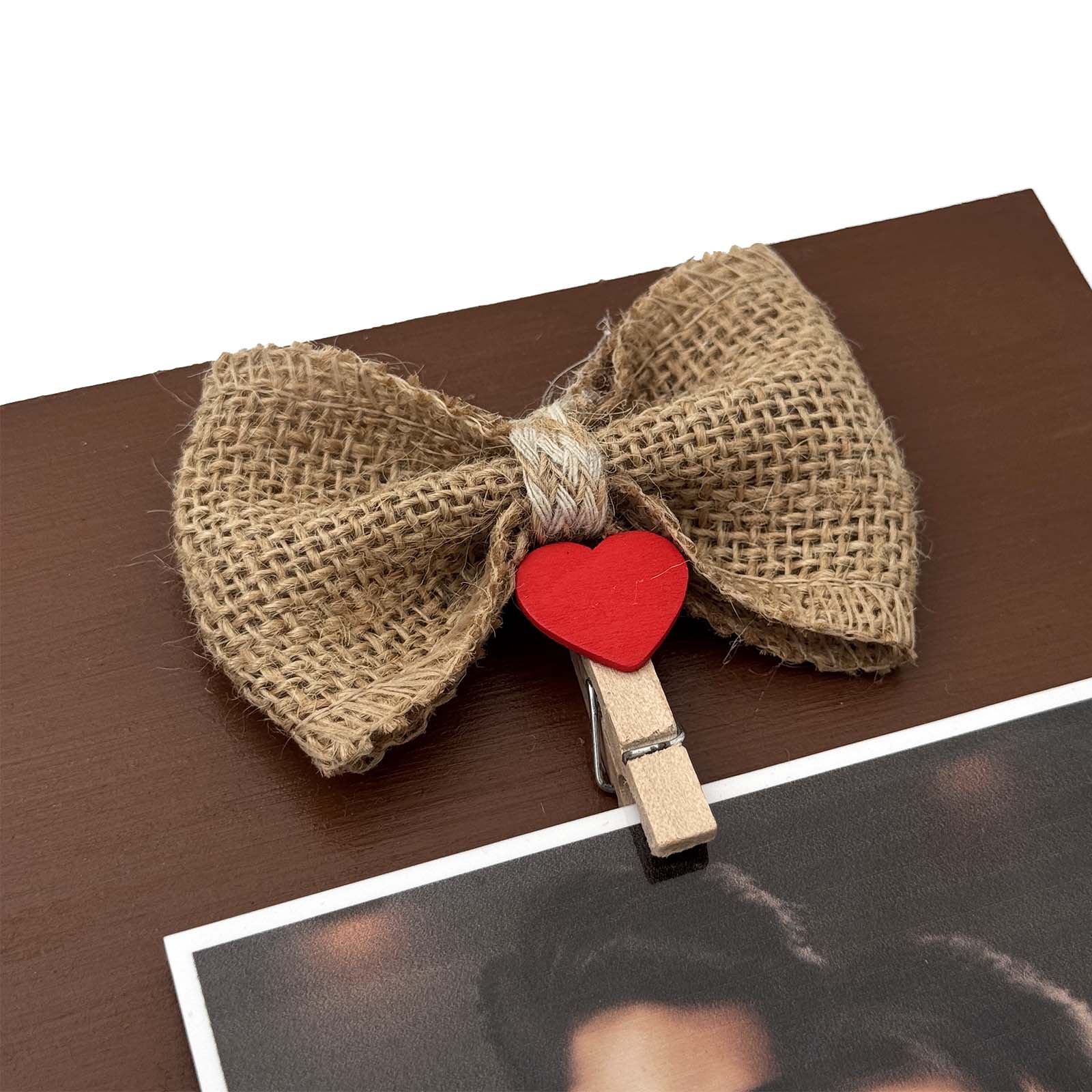- This photo holder comes with an attached wooden clip to hang photograph.