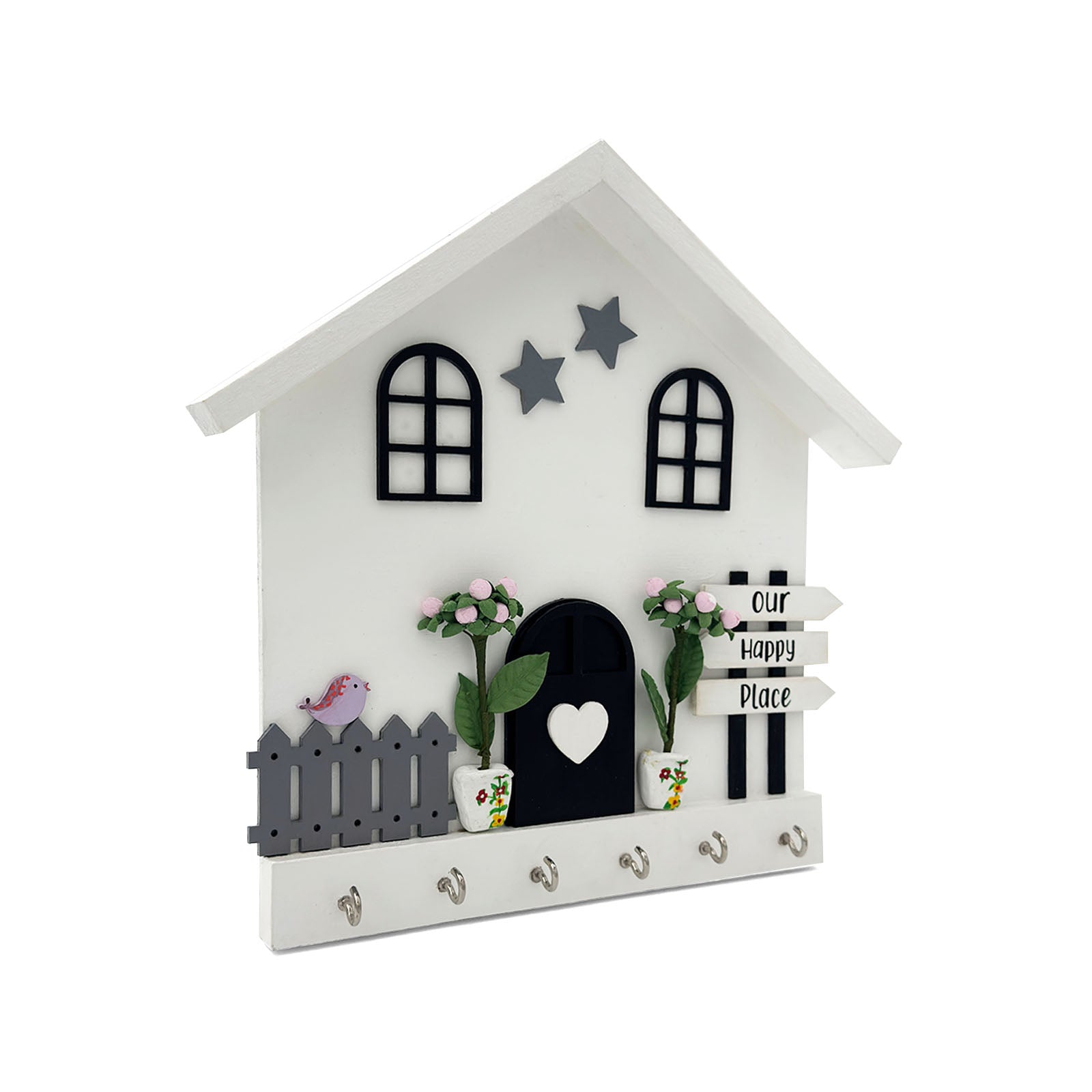 - With its adorable hut shape, this key holder adds a welcoming touch to your home while keeping your keys neatly in place.
