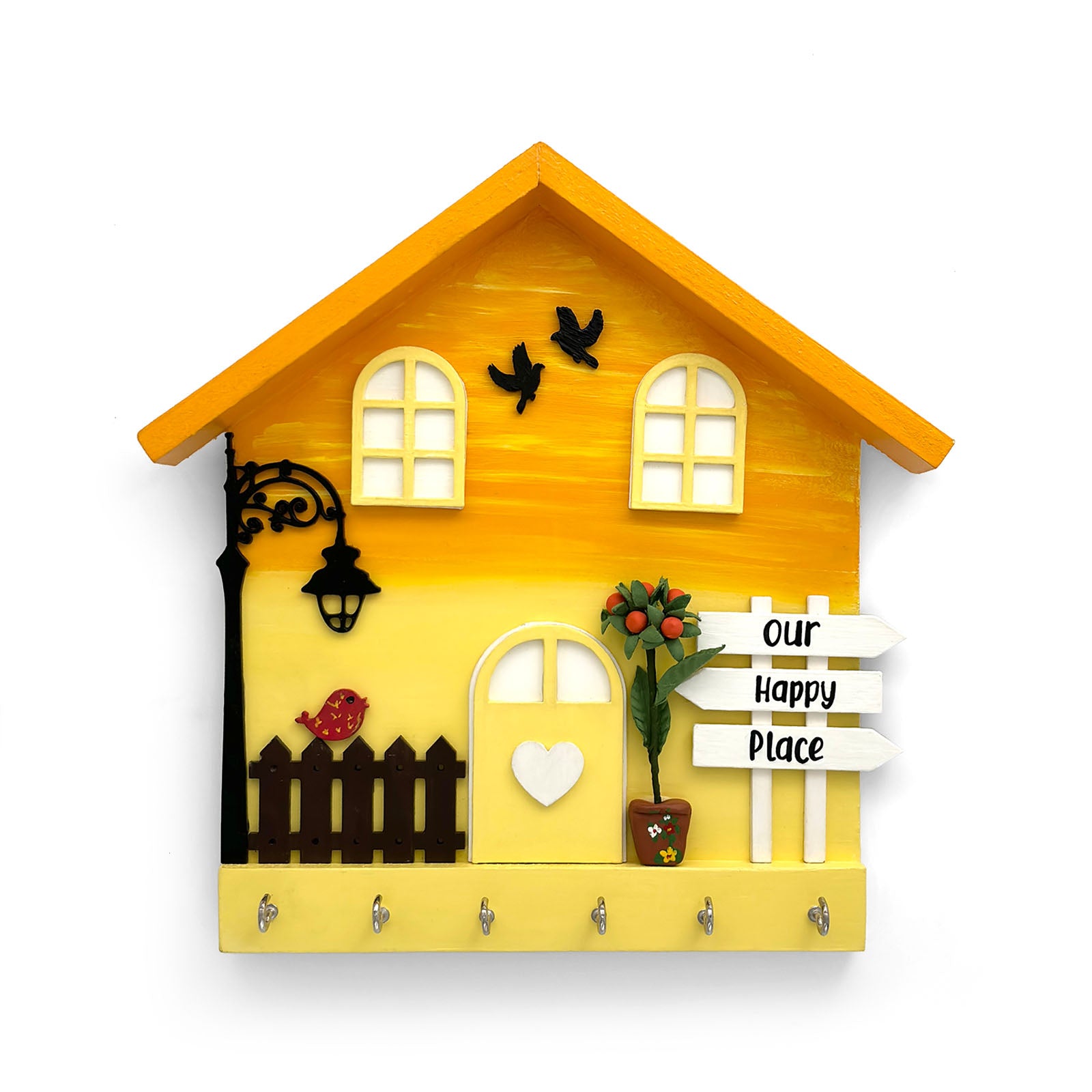 Personalised Hand-Painted Wooden Hut Key Holder - Yellow