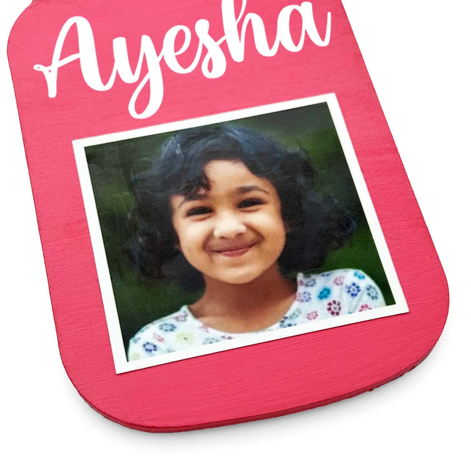 Personalised Hand-Painted Wooden Jar Fridge Magnet With Photo - Pink