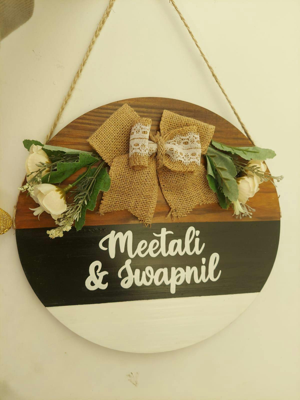 Personlised Hand-Painted Wooden Door Hanger - Black, White, & Wooden Finish