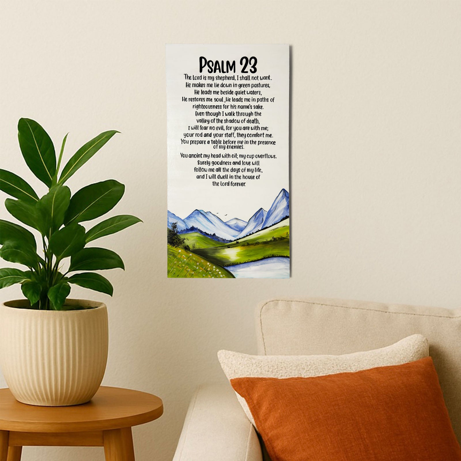 Psalm 23 Hand-Painted Wooden Wall Hanging