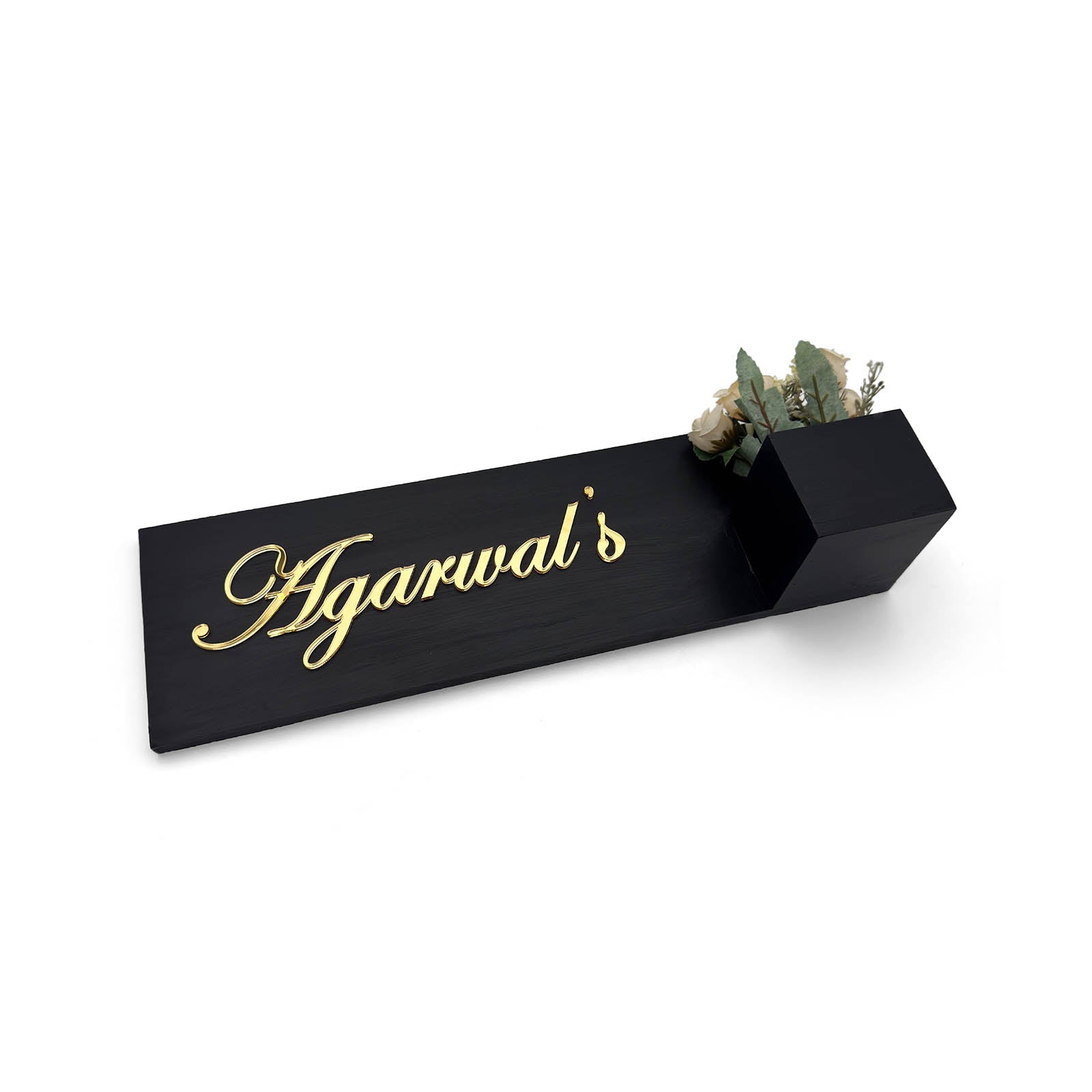Rectangular Hand-Painted Wooden Planter Name Plate For Home - Wooden Finish
