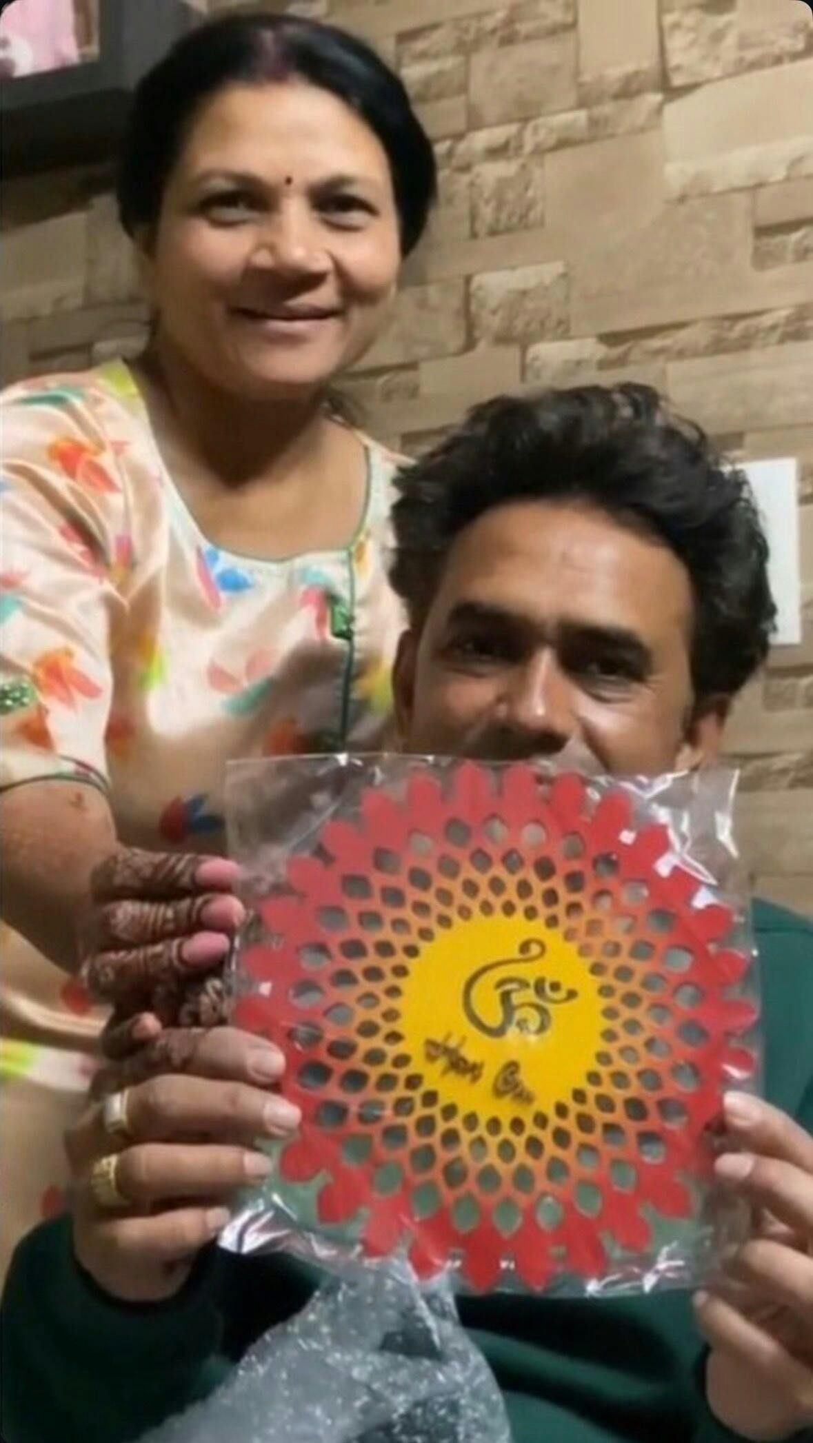 - This beautifully crafted piece combines two powerful symbols: the Sahasrara Chakra (Crown Chakra), the highest energy center in the body, representing spiritual enlightenment and connection to higher consciousness, and Hari Om, a sacred mantra that symbolizes the divine presence and the universal sound of creation.