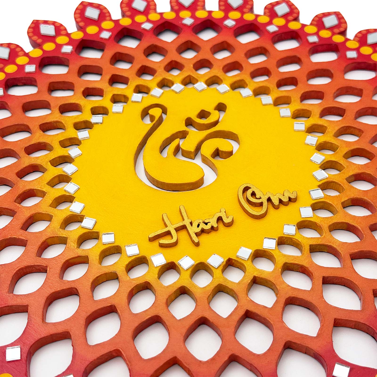 Sahasrara Chakra Hari Om Hand-Painted Wooden Wall Hanging - Red