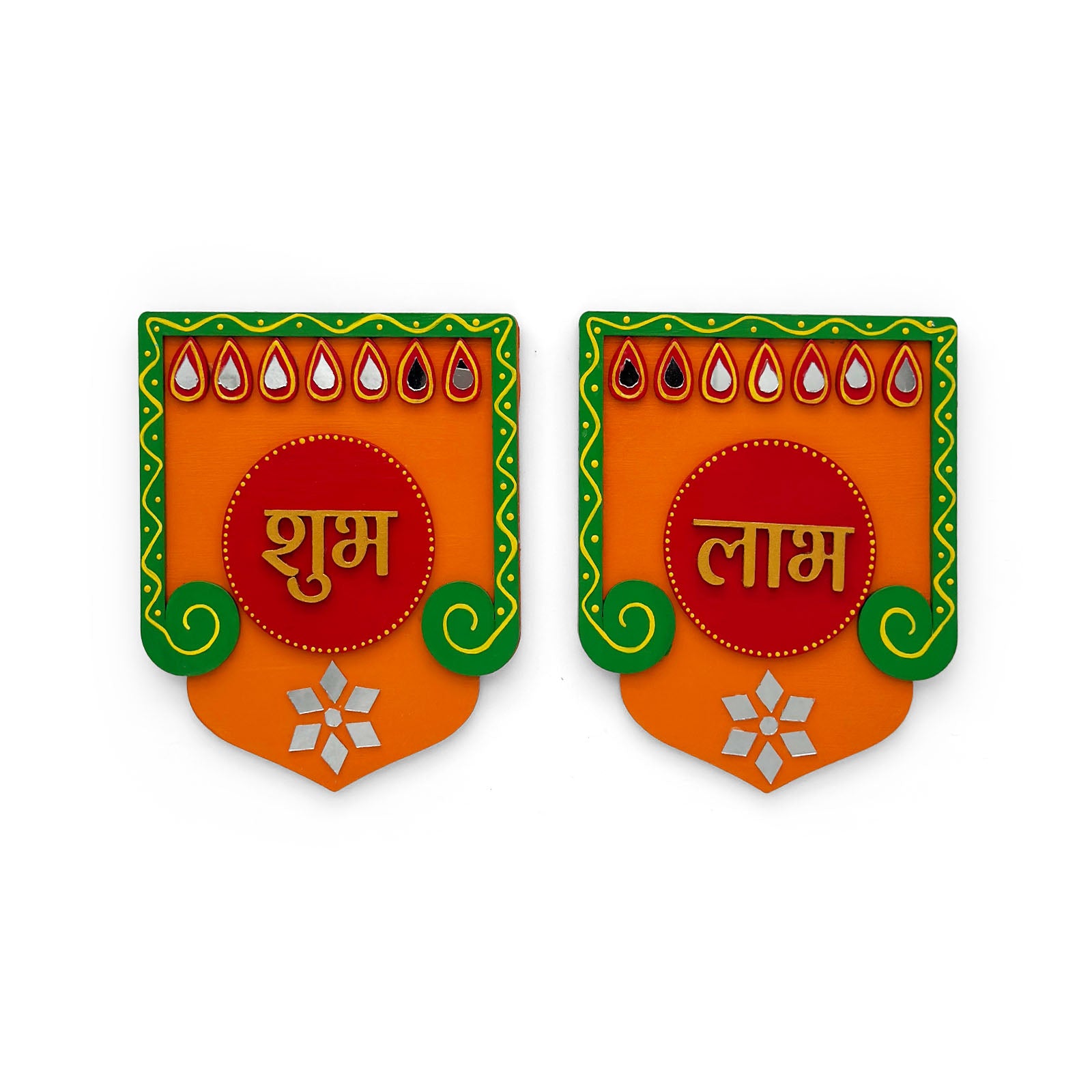 Shubh Labh Hand-Painted Wooden Wall Hanging - Design 2