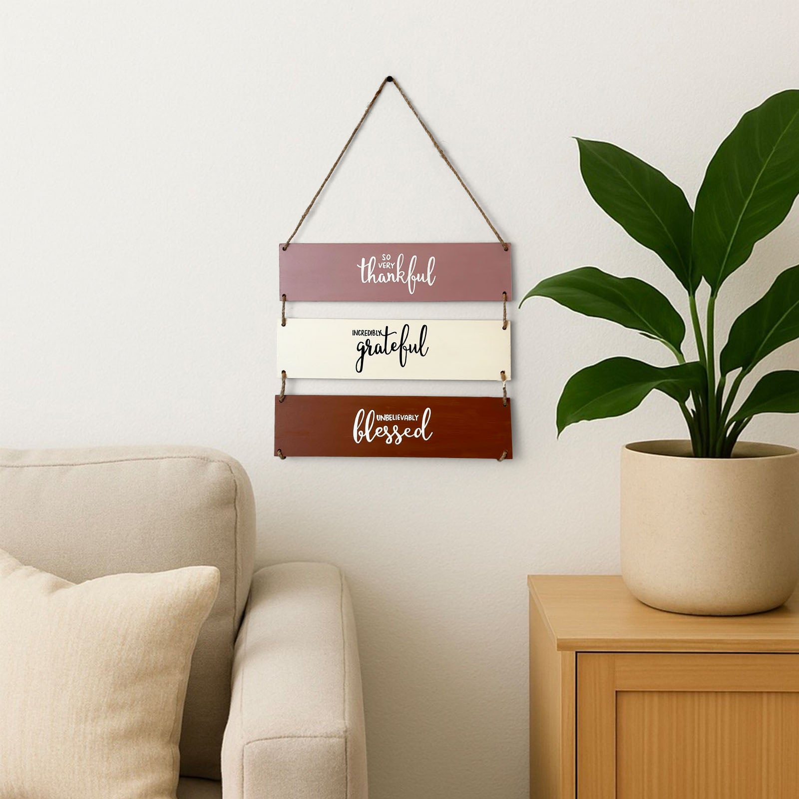 So Very Thankful Incredibly Grateful Unbelievably Blessed Hand-Painted Wooden Plank Wall Hanging