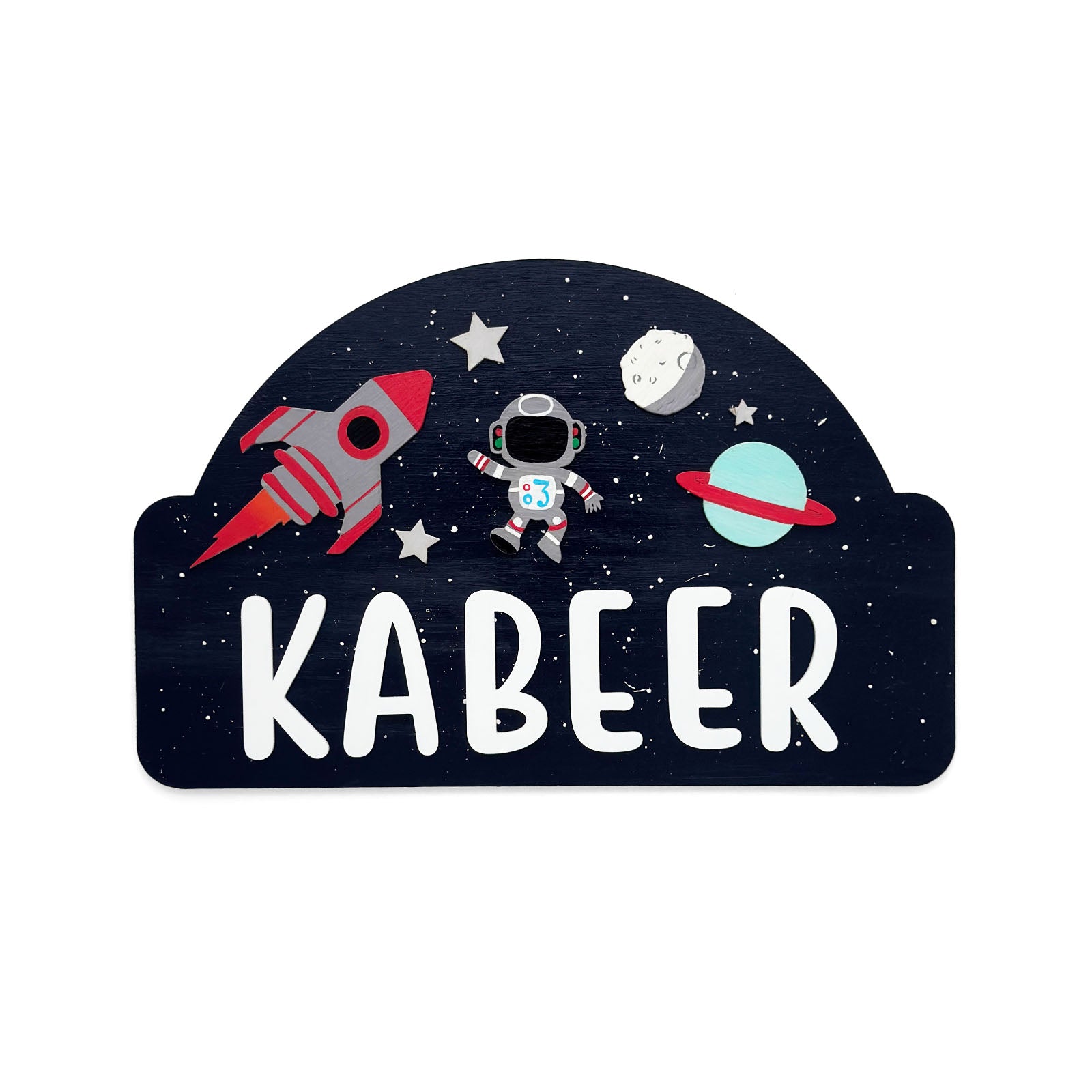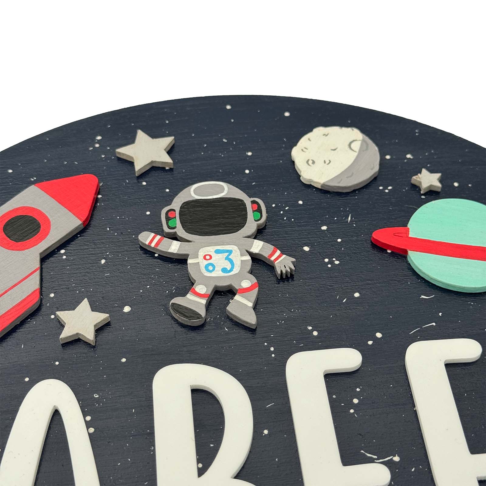 - Add a charming touch to your kid’s room with this adorable space-themed nameplate.