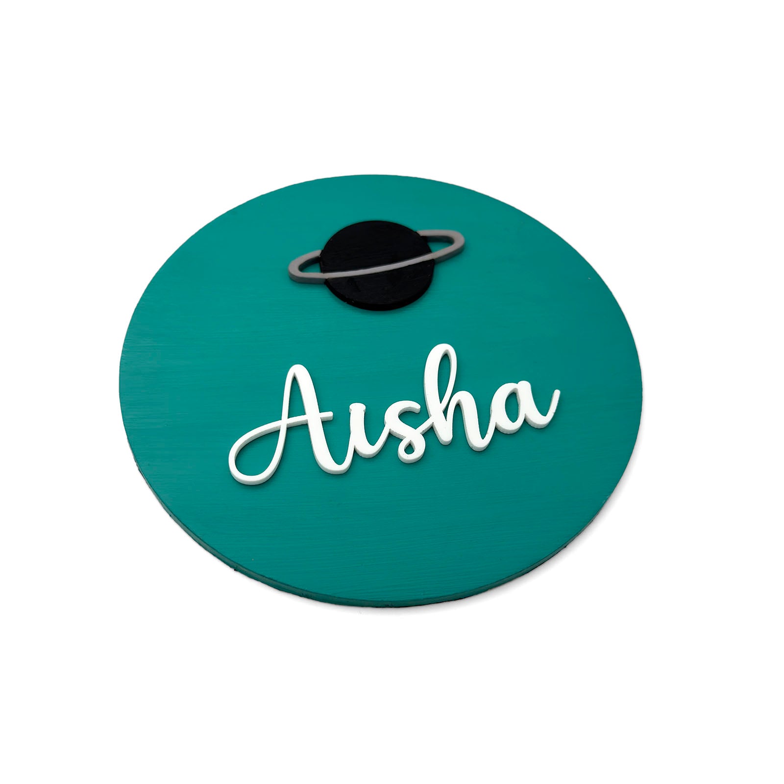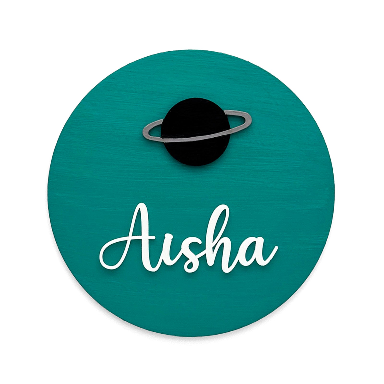 - Add a charming touch to your kid’s room with this adorable space-themed nameplate.