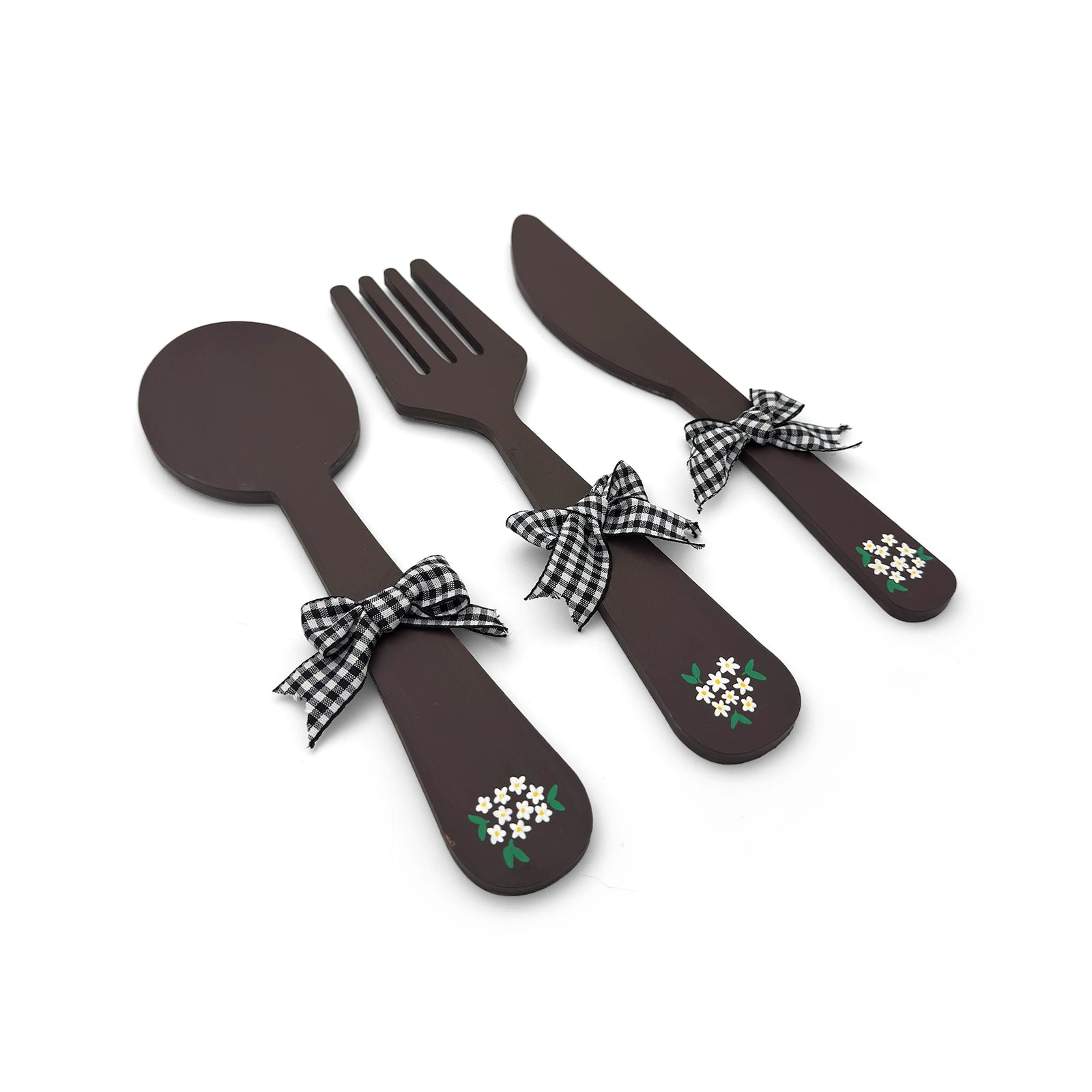 Spoon, Fork, Knife Hand-Painted Wooden Kitchen Wall Hanging Set Of 3