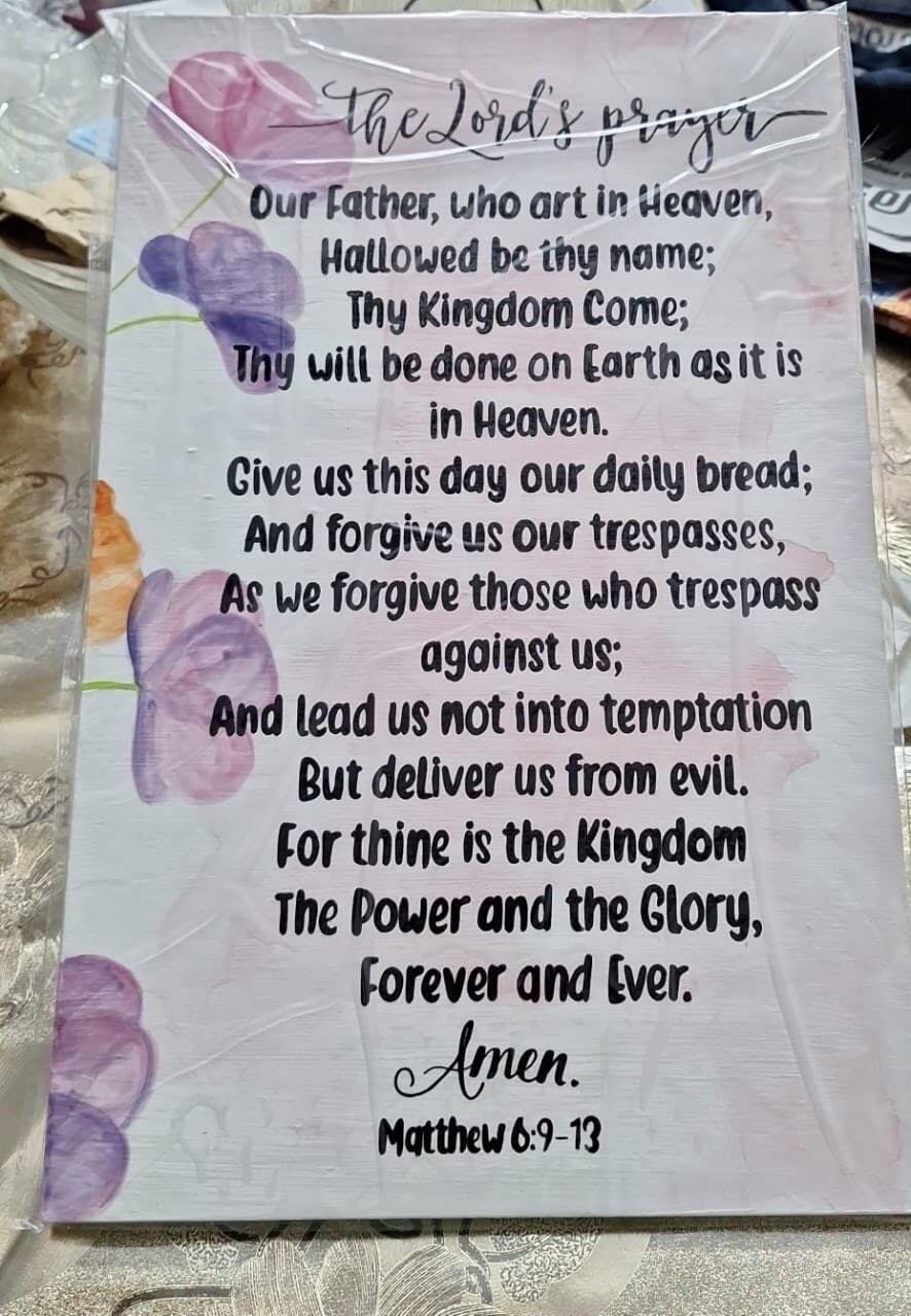 - Our wooden wall hanging featuring The Lord’s Prayer brings a peaceful and inspirational touch to any space, serving as a beautiful reminder of faith, hope, and divine guidance.