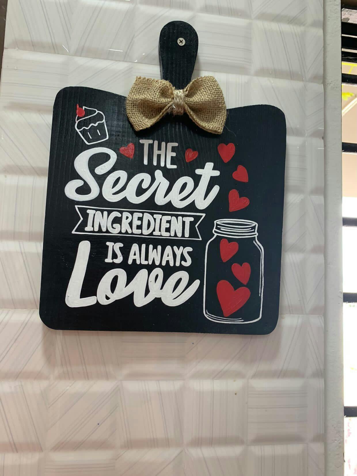 The Secret Ingredient Is Always Love Hand-Painted Wooden Chopping Board Kitchen Wall Hanging - Black