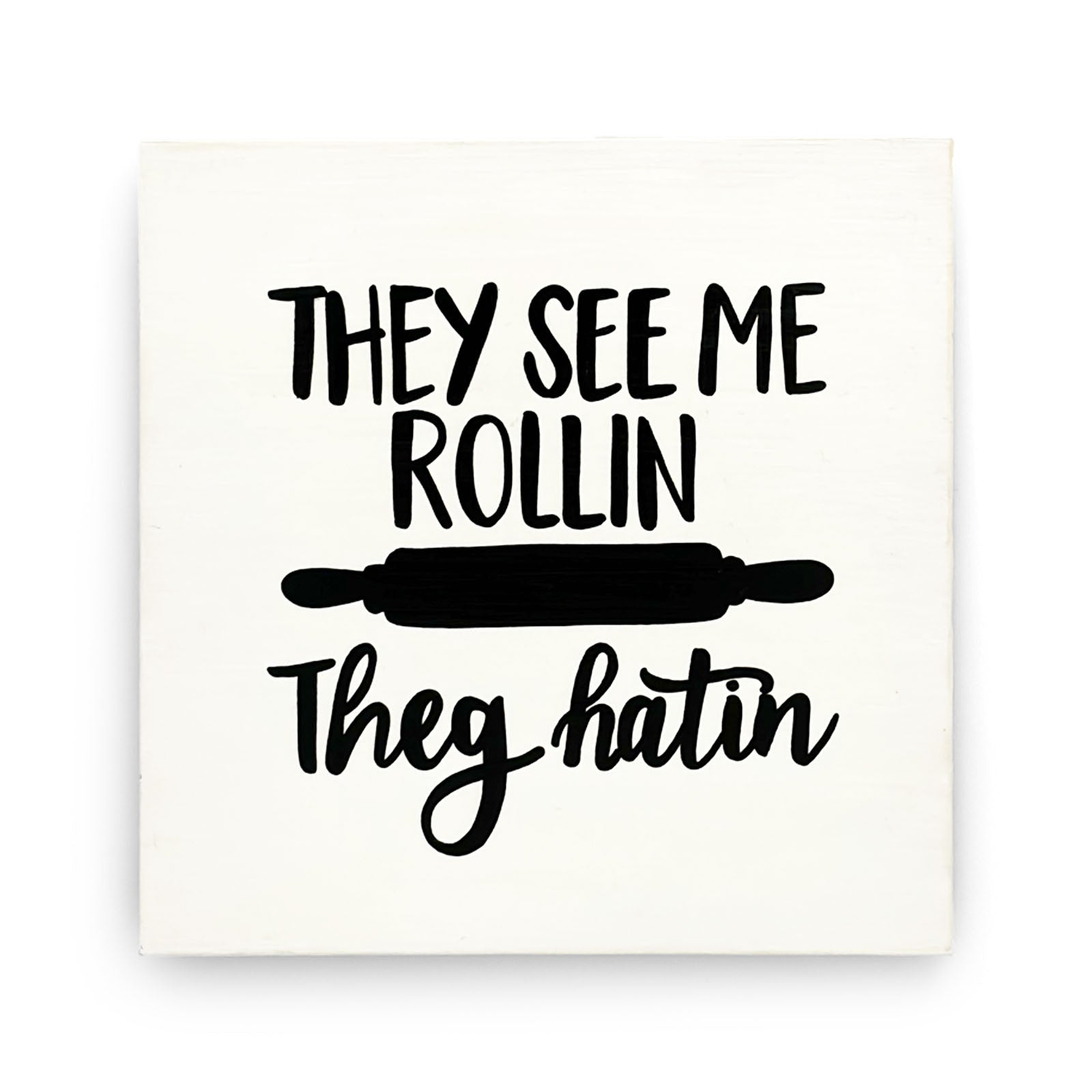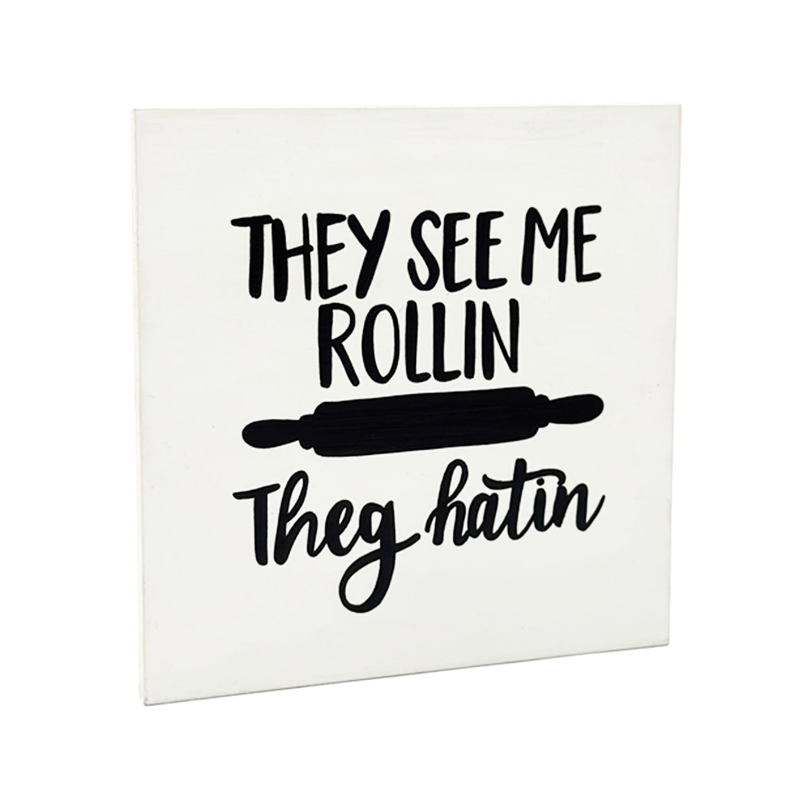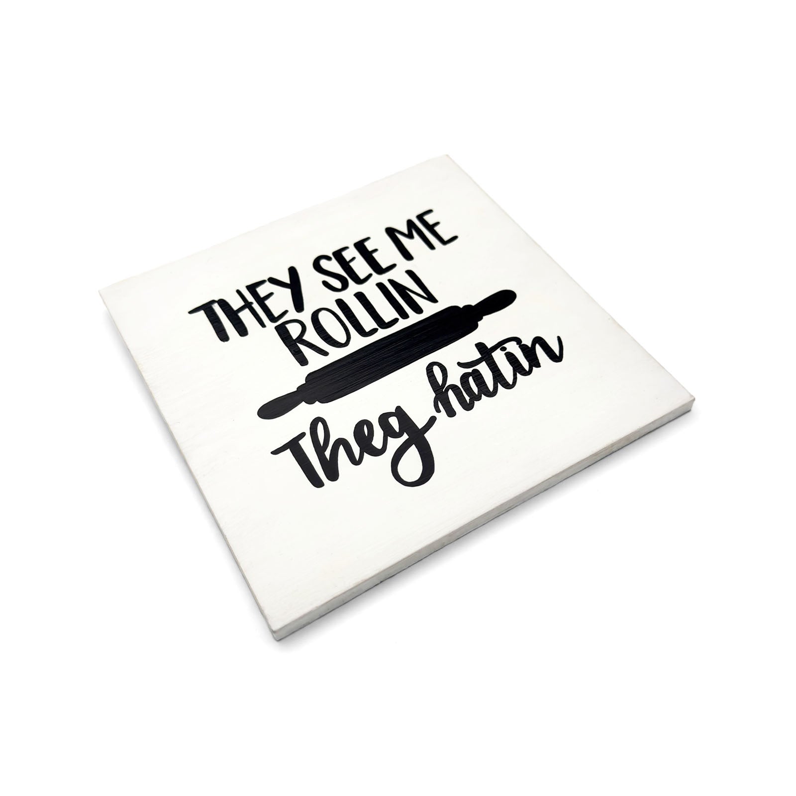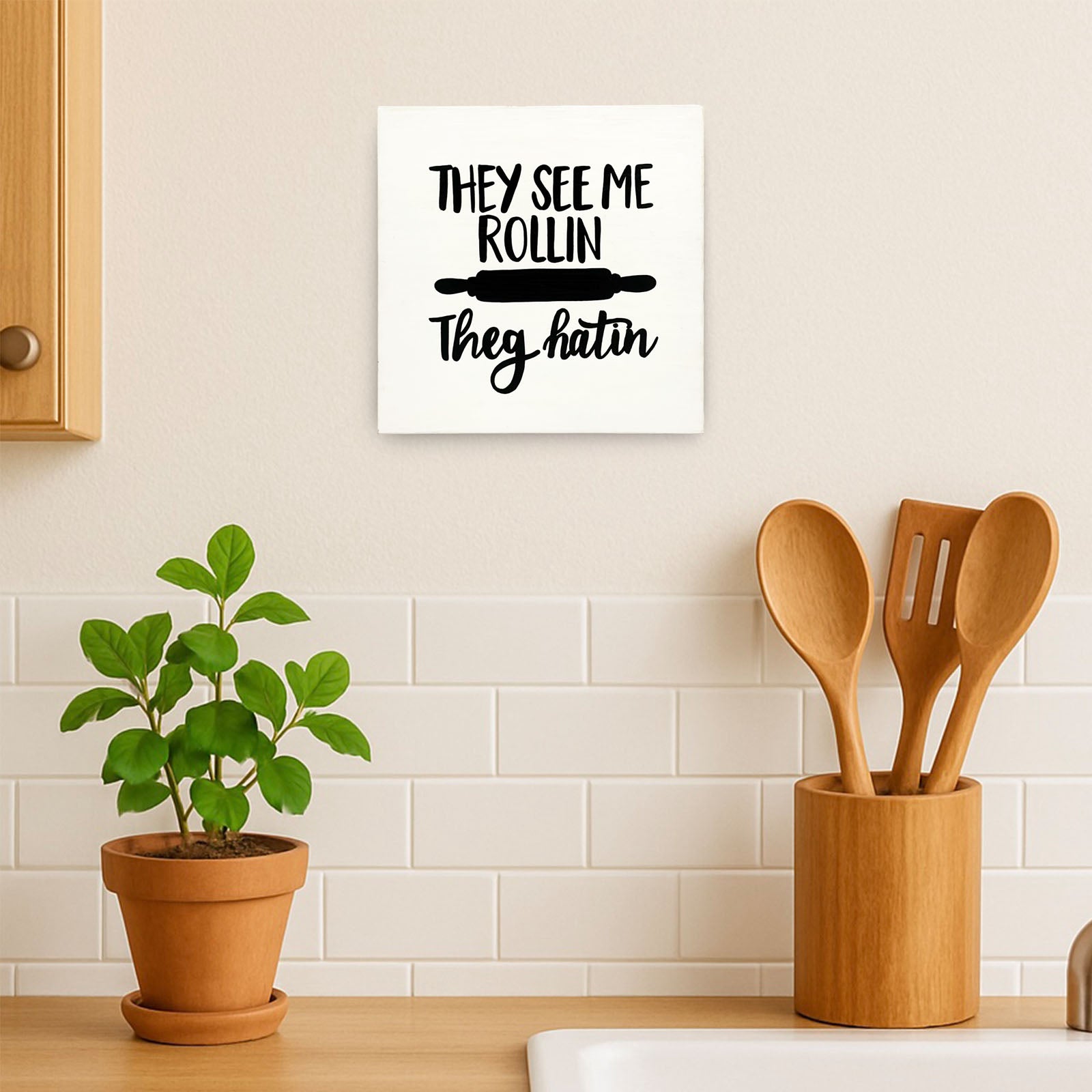 They See Me Rollin’ They Hatin’ Hand-Painted Wooden Kitchen Wall Hanging - White