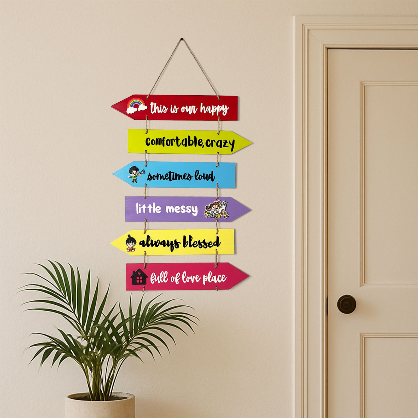 This Is Our Happy Place Hand-Painted Wooden Arrow Plank Wall Hanging - Design 2
