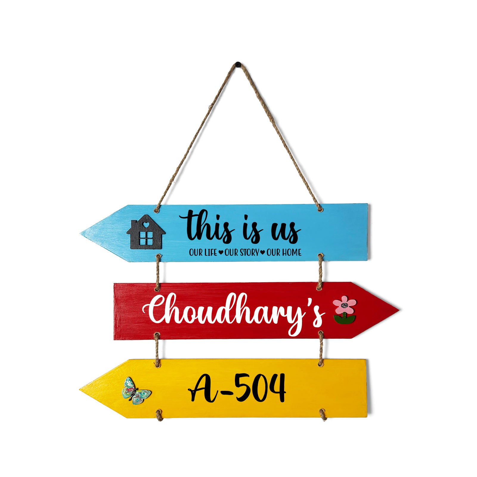 This Is Us Our Life Our Story Our Home Hand-Painted Wooden Arrow Plank Name Plate For Home - Three Planks