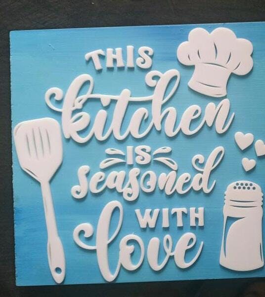This Kitchen Is Seasoned With Love Hand-Painted Wooden Kitchen Wall Hanging - Blue