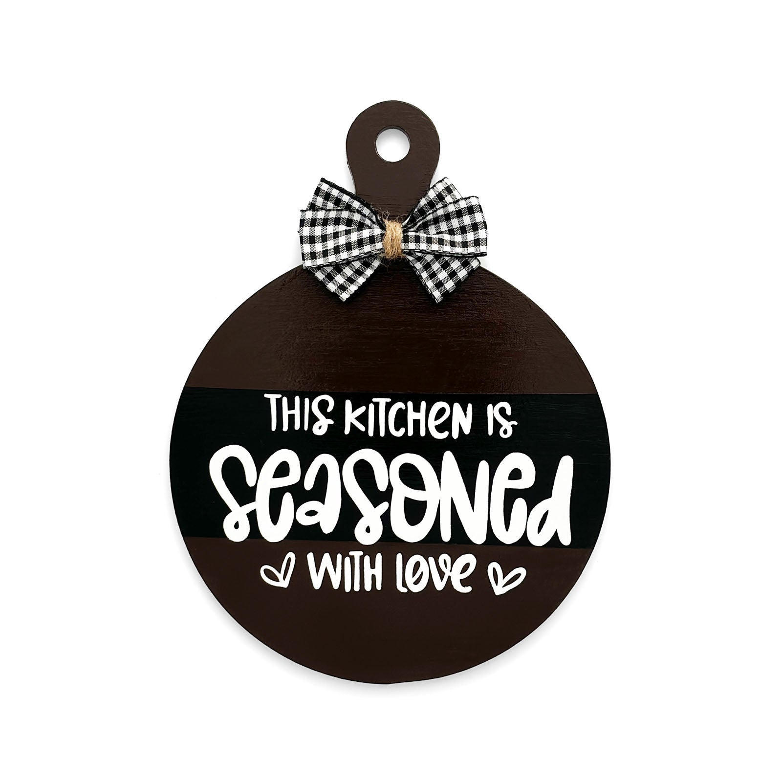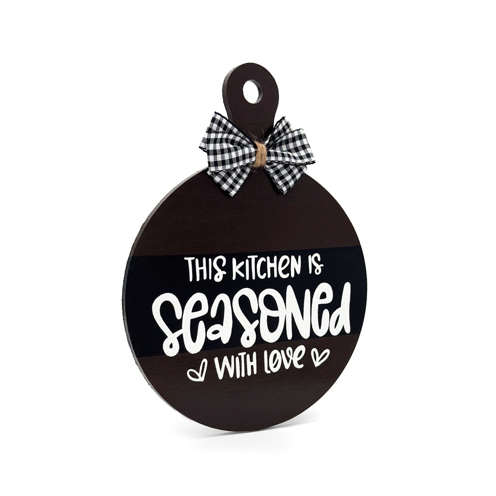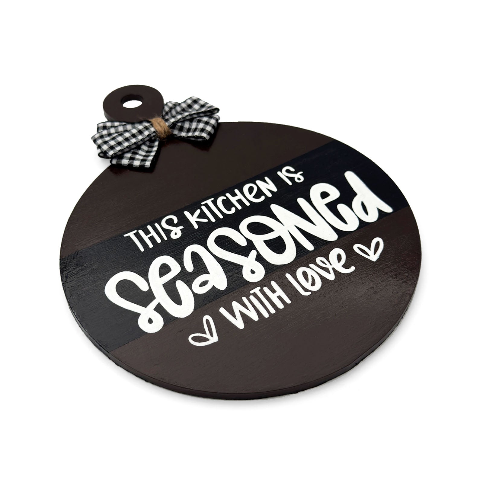 This Kitchen Is Seasoned With Love Hand-Painted Wooden Round Chopping Board Kitchen Wall Hanging - Dark Brown