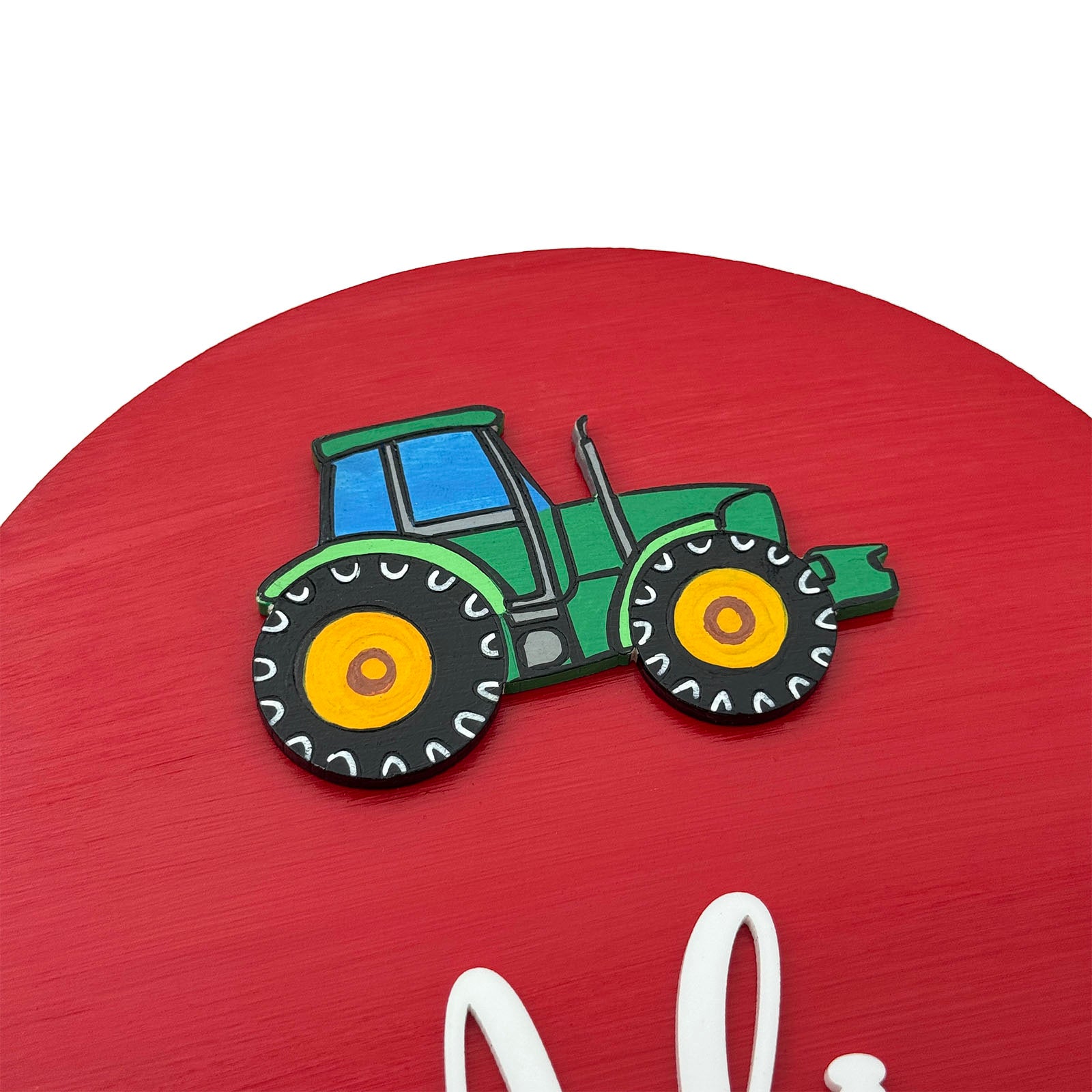 Tractor Themed Hand-Painted Wooden Mini Kids Name Plate