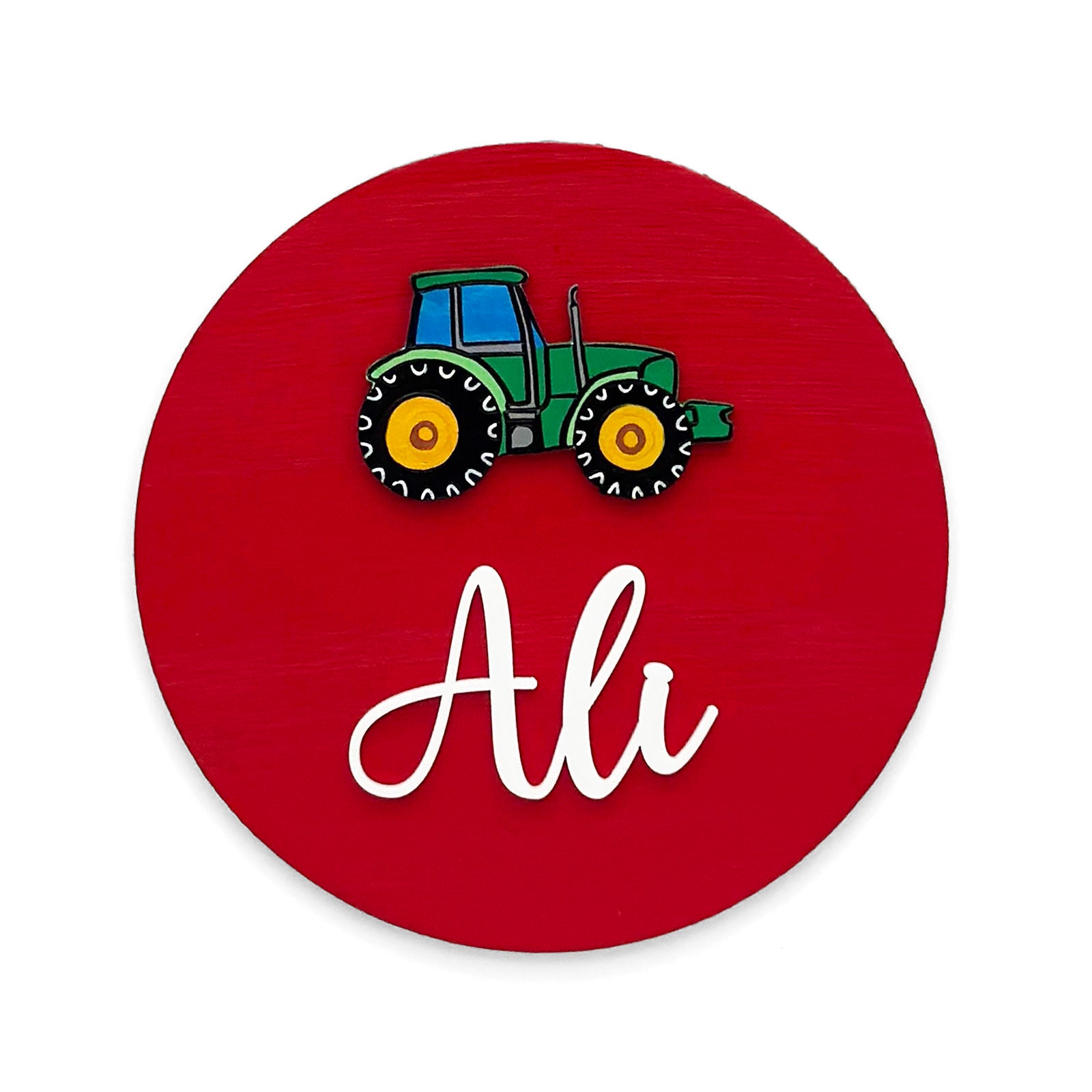 - Add a charming touch to your kid’s room with this adorable tractor-themed nameplate.
