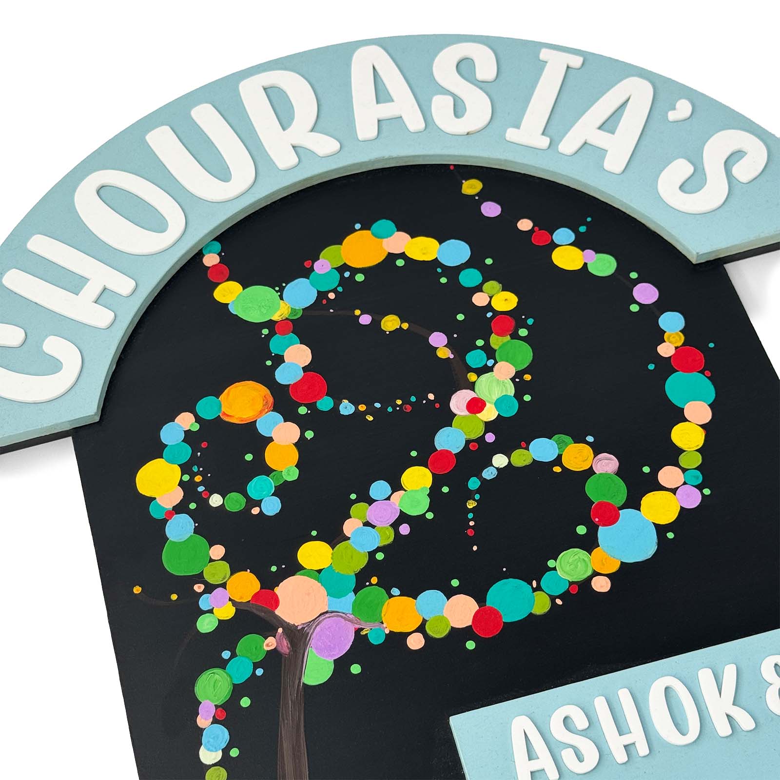 Tree Themed Hand-Painted Wooden Hut-Shaped Name Plate For Home