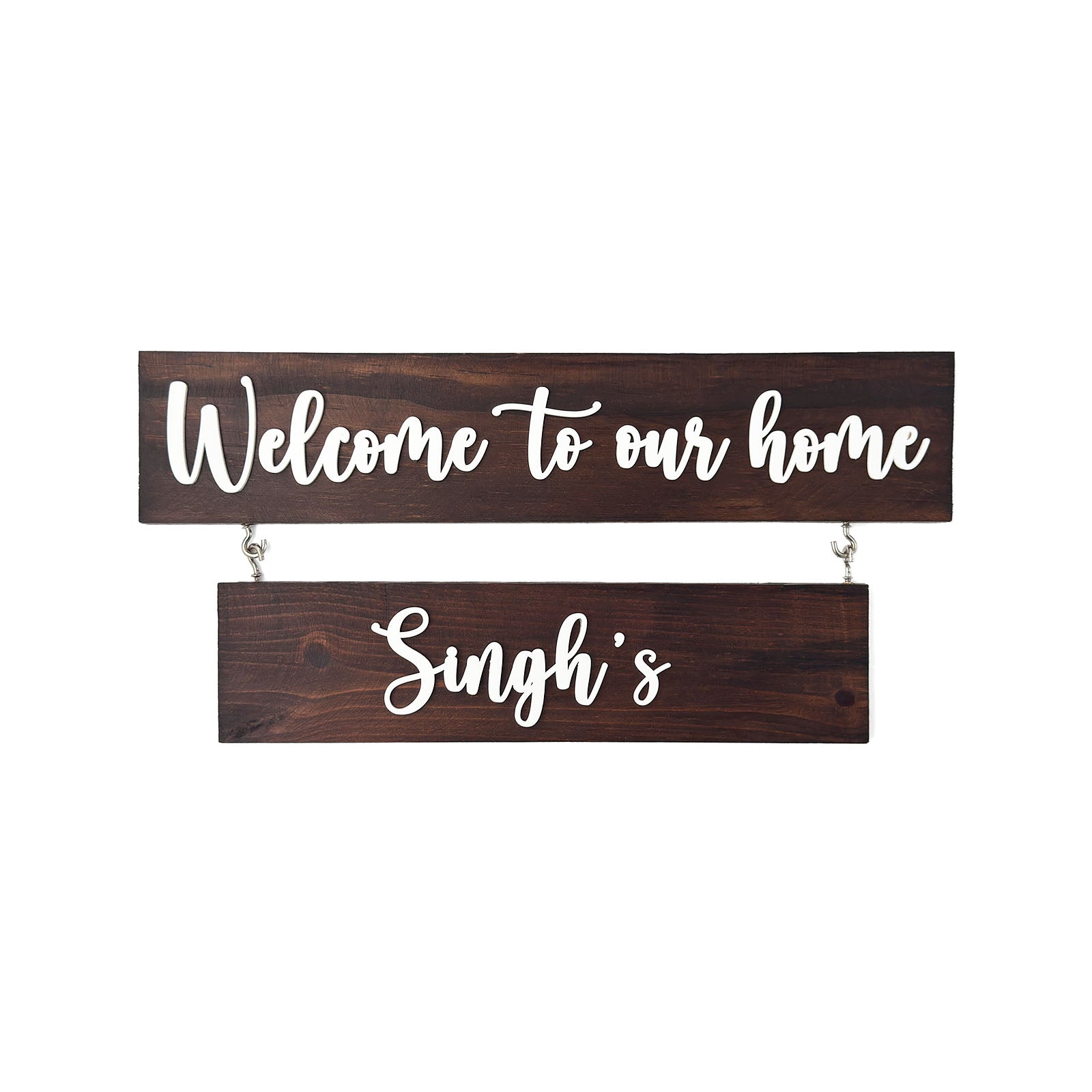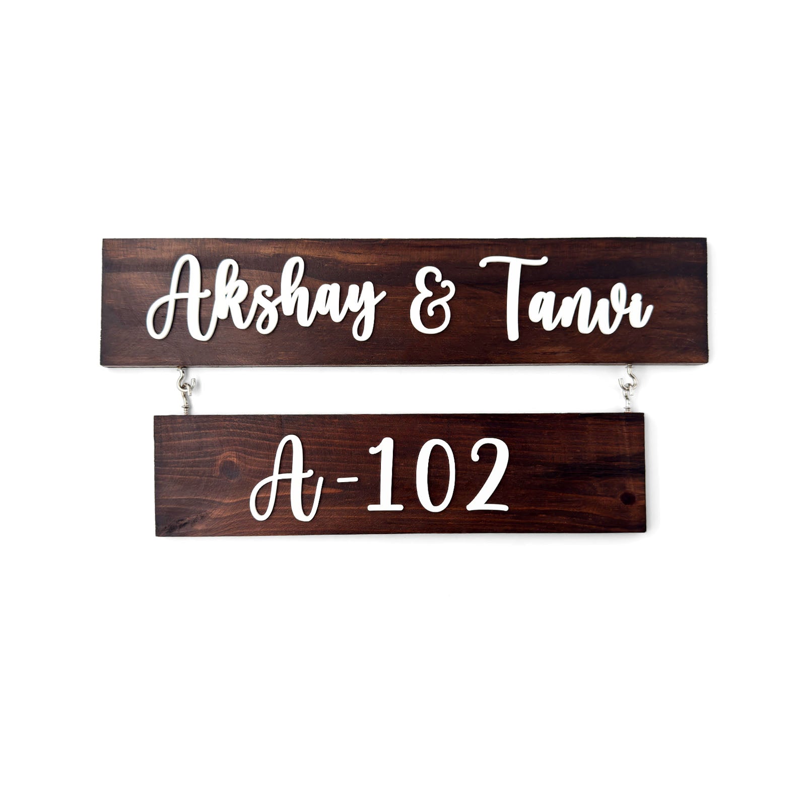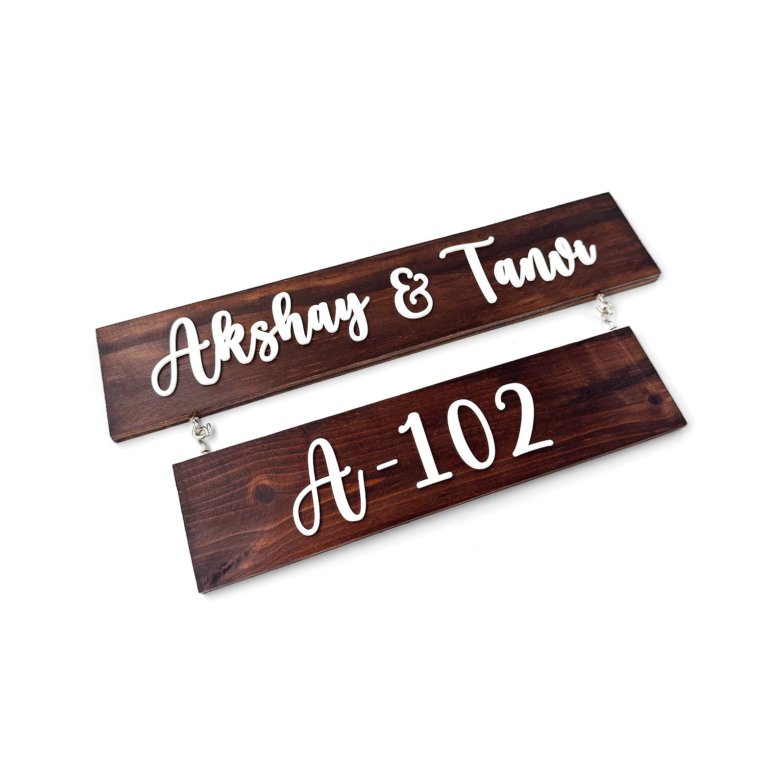 Two Plank Hand-Painted Wooden Name Plate For Home - Wooden Finish