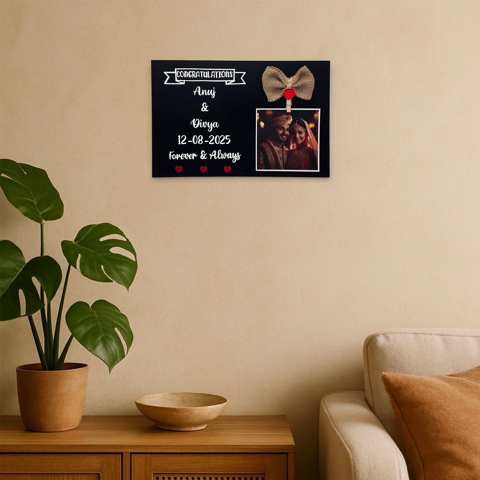 - Surprise your loved one with this wedding gift personalized with names, wedding date, and a photograph.