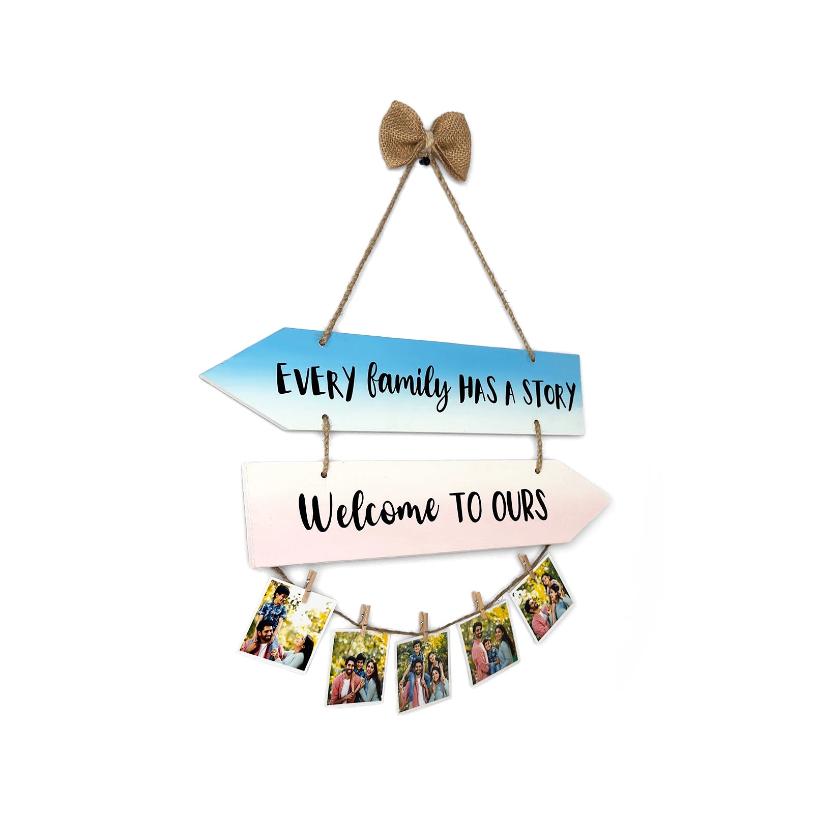 Welcome Hand-Painted Wooden Photo Holder - Blue & Pink