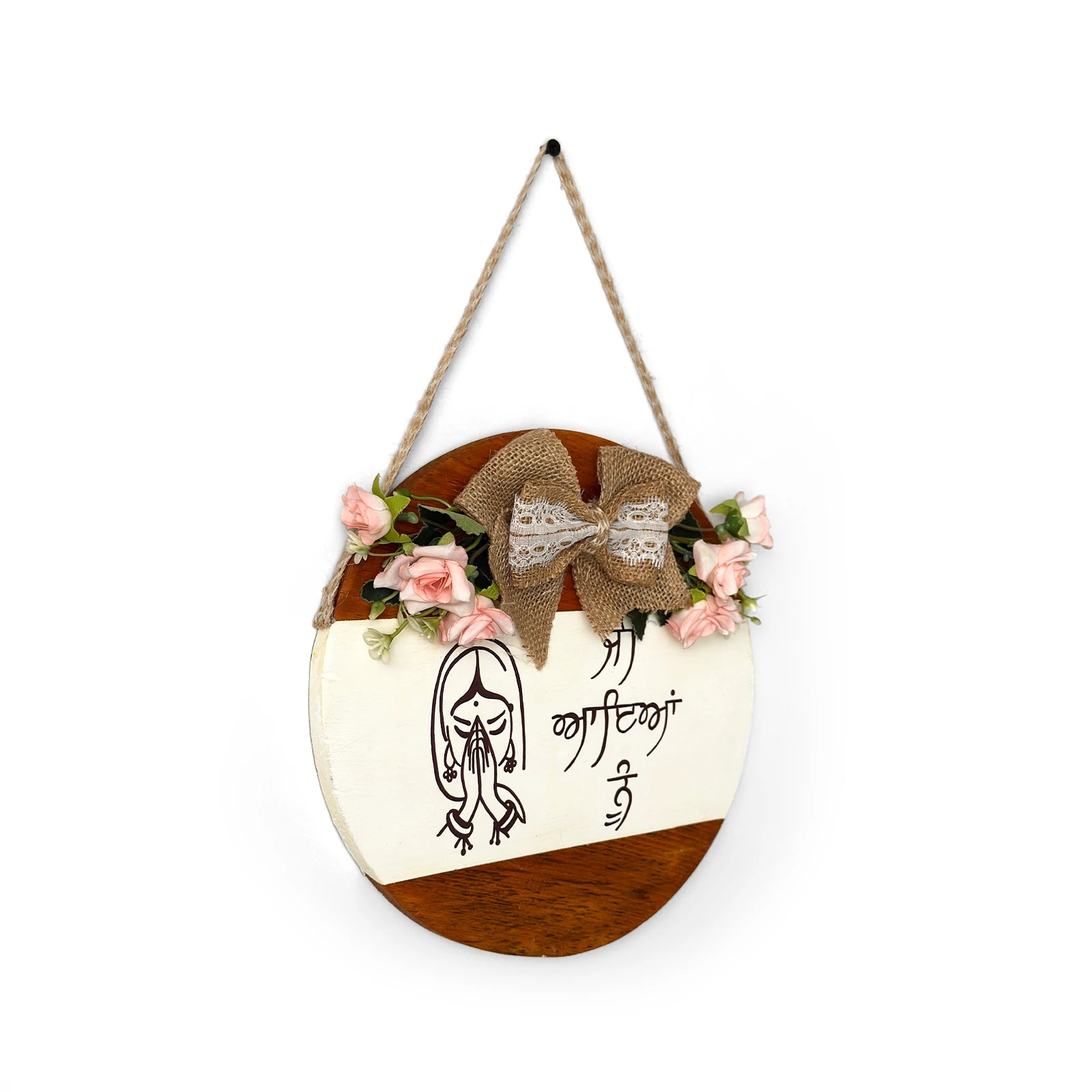 Welcome In Punjabi Hand-Painted Wooden Door Hanger