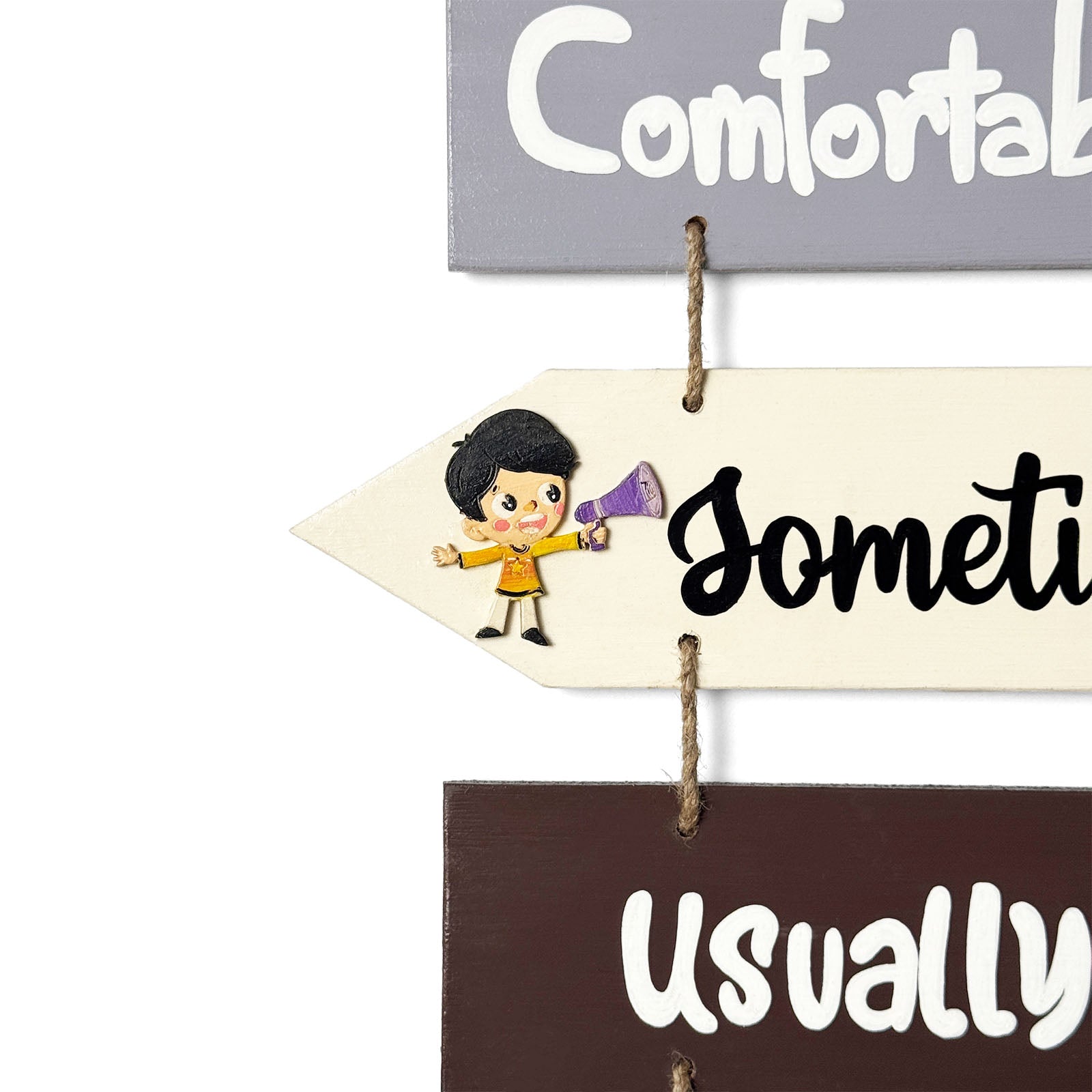 - Add a touch of whimsy and warmth to your space with our playful, hand-crafted wooden plank hanging.