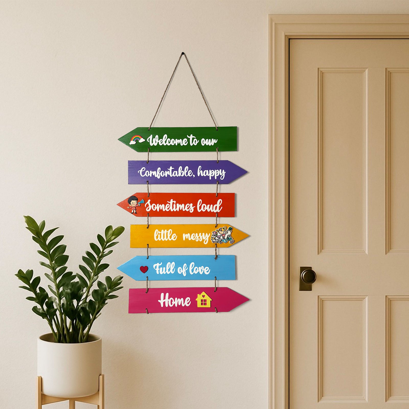 - It is perfect for display in entryways, living rooms, or any space that could use a playful and inviting message.
