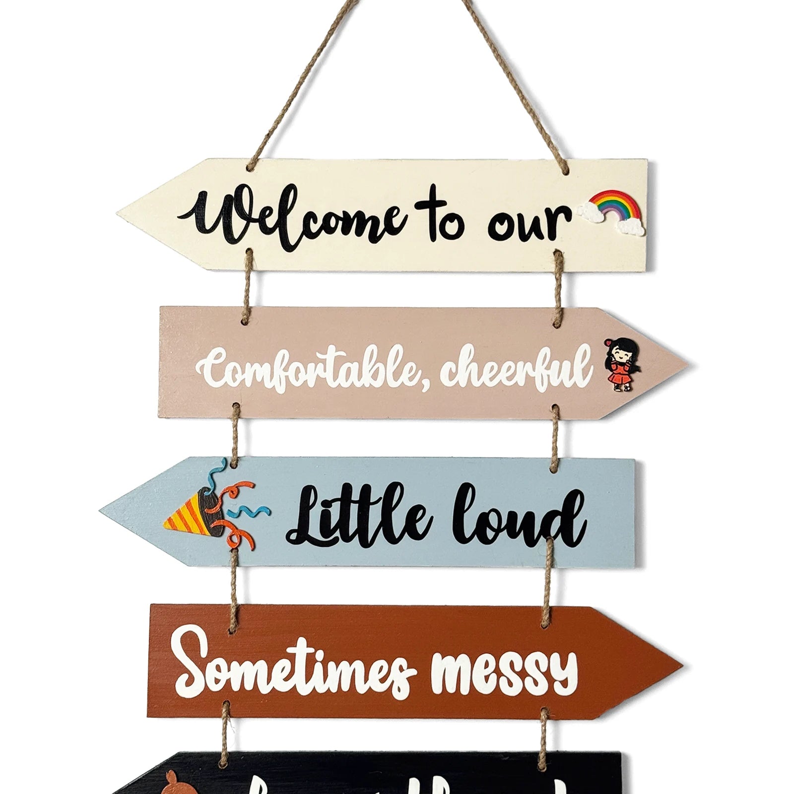 - It is perfect for display in entryways, living rooms, or any space that could use a playful and inviting message.