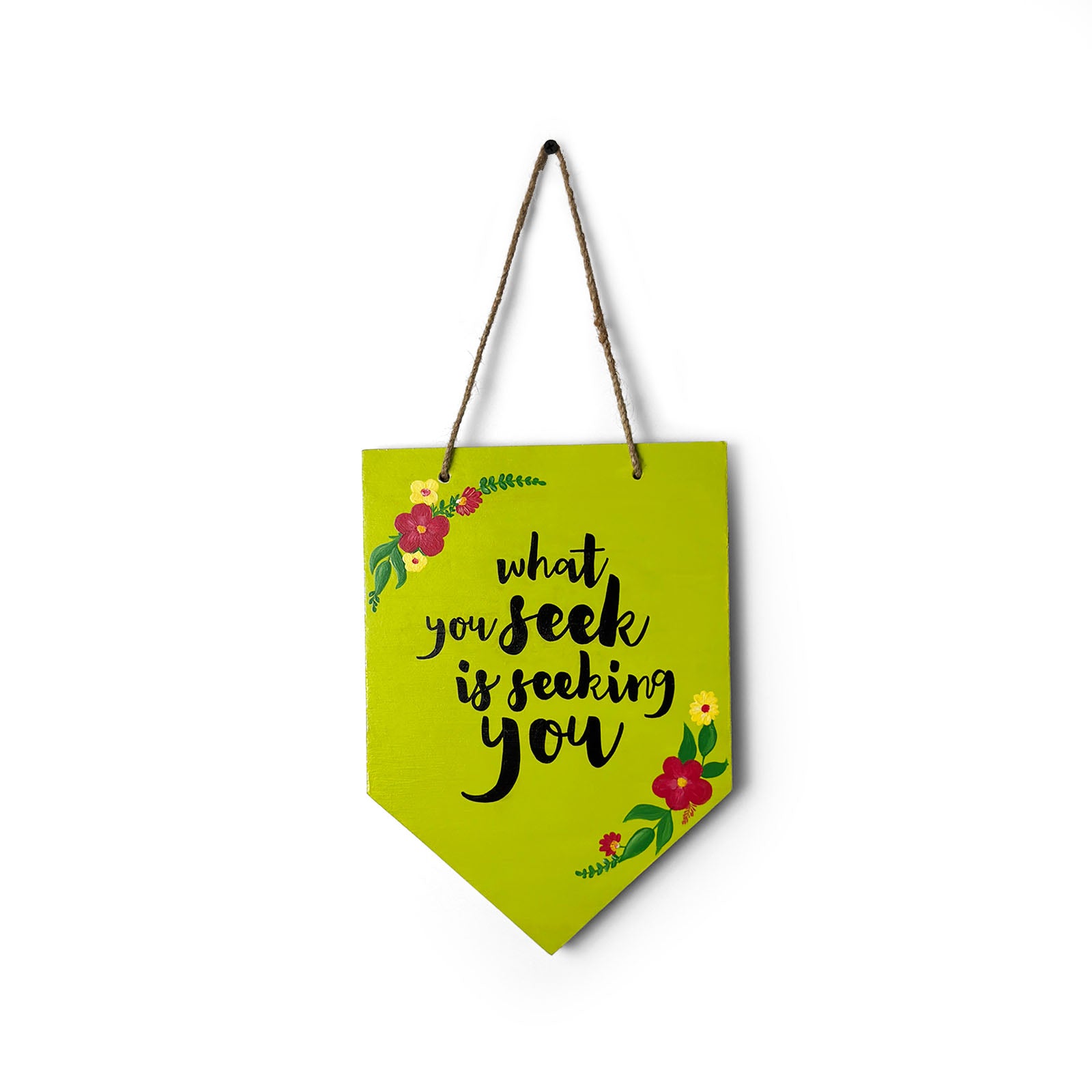 What You Seek Is Seeking You Hand-Painted Wooden Banner Hanging
