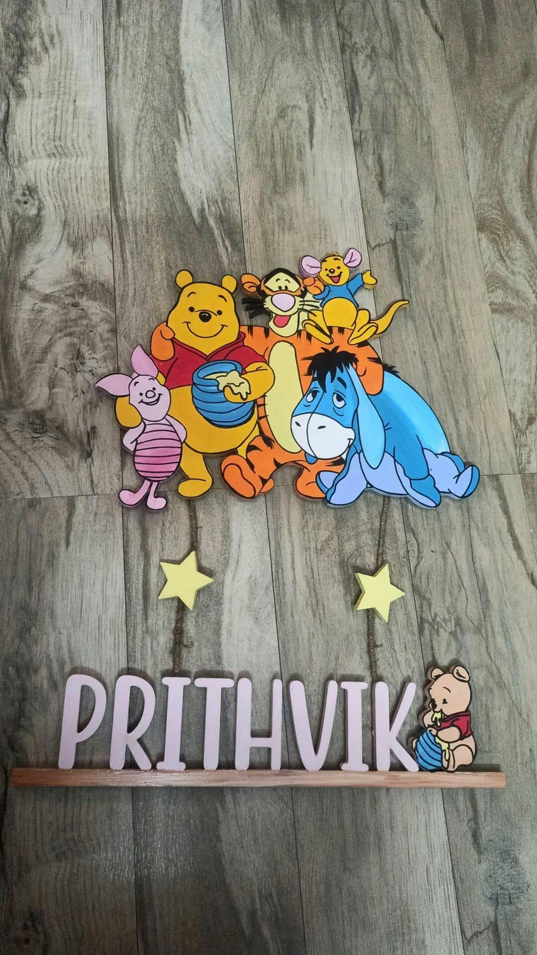 - Add a charming touch to your kid’s room with this adorable Winnie-the-Pooh-themed nameplate.