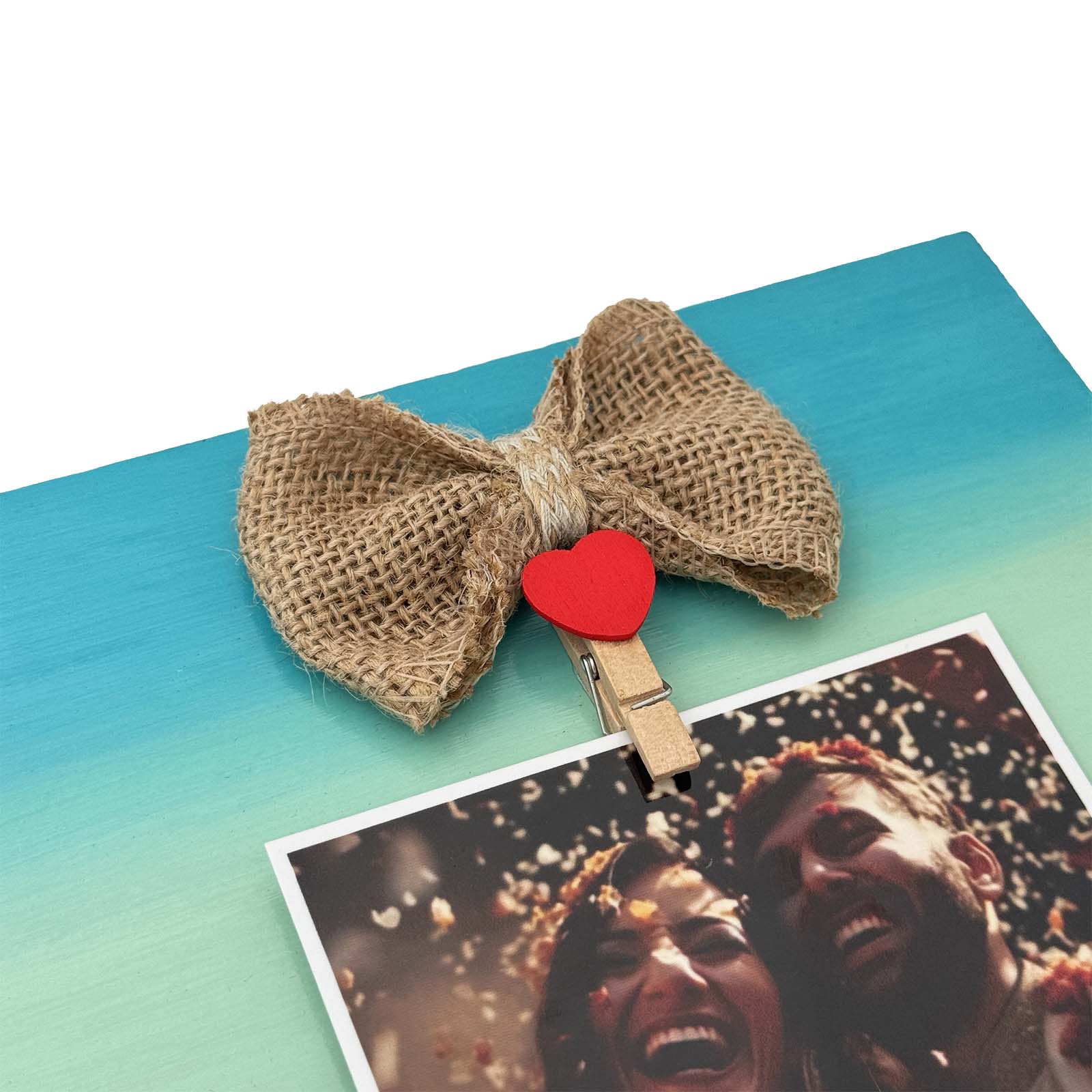 - This photo holder comes with an attached wooden clip to hang photograph.